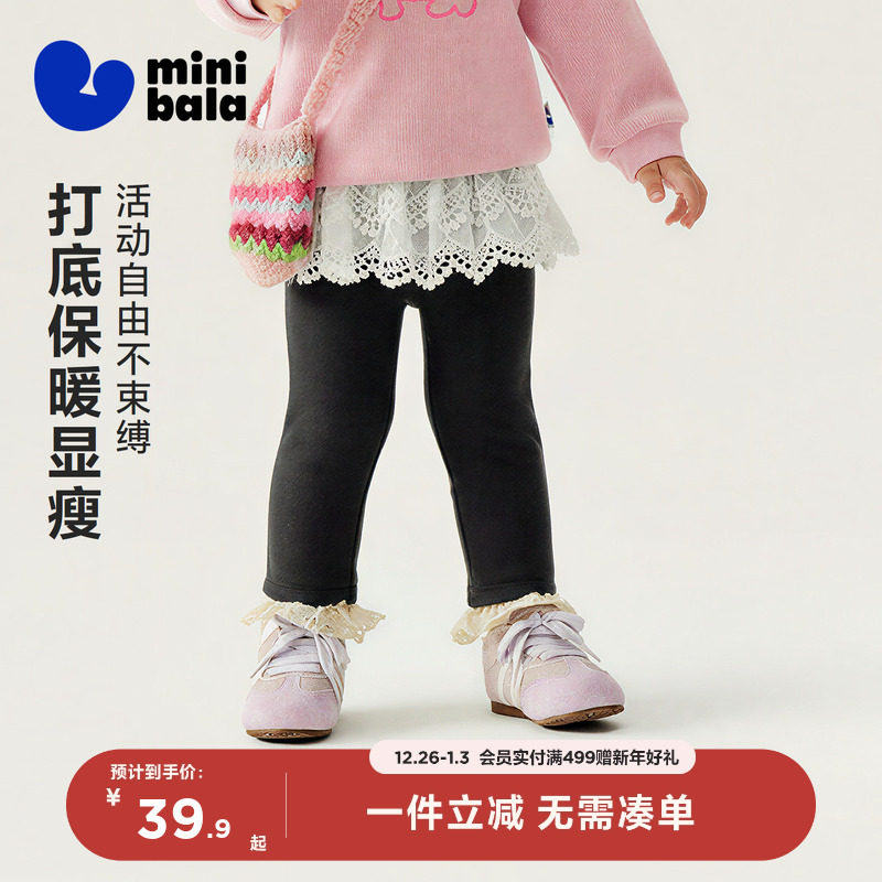 迷你巴拉巴拉女童打底裤儿童亲肤保暖柔软内里抓绒裤子2025冬新款