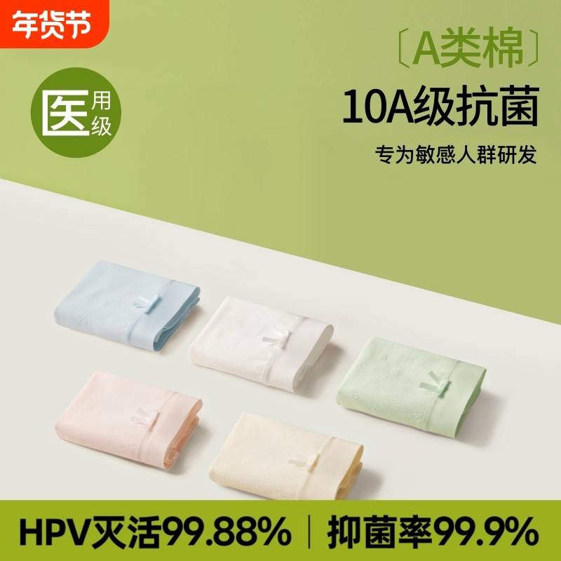 草本初色妇炎洁内裤女2025新款中高腰加长纯棉底裆无痕抗菌三角裤