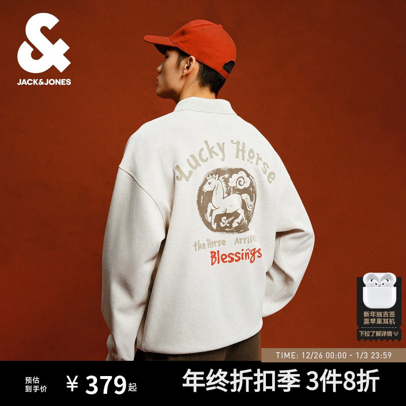 【马年新年款】杰克琼斯男装红色POLO领卫衣刺绣宽松本命年礼物