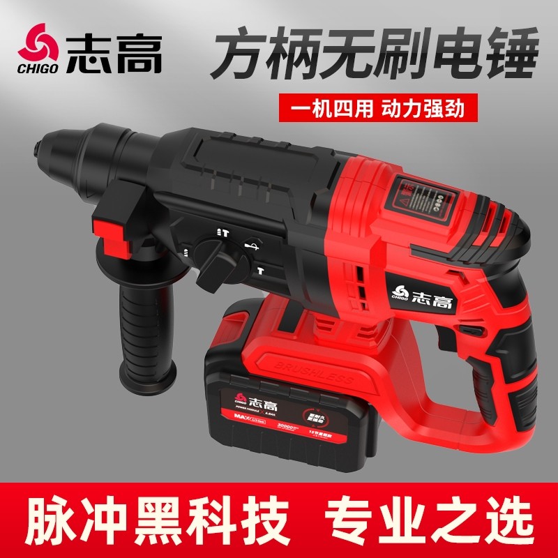 志高脉冲无刷电锤锂电充电三用电镐家用混凝土大功率冲击电钻两用