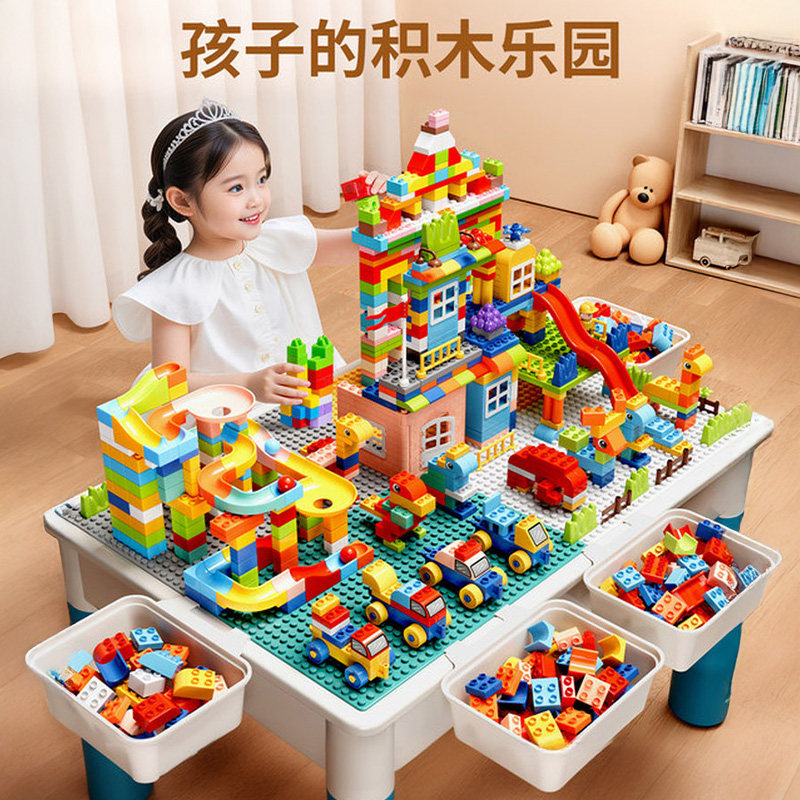 儿童积木桌子大颗粒多功能男孩女宝宝婴儿玩具游戏桌益智6岁拼装3