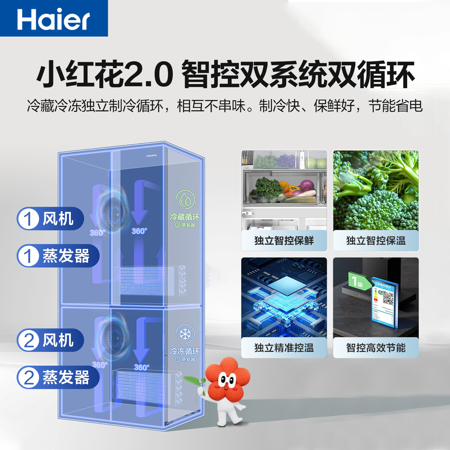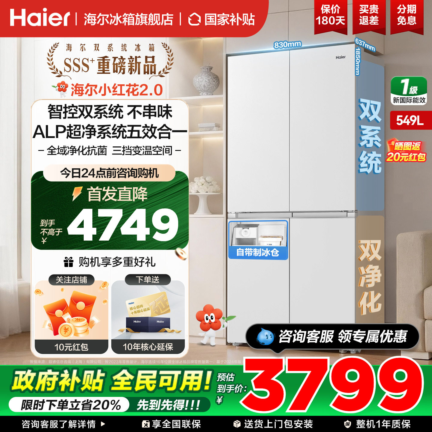 【双系统】海尔小红花549升十字四门一级大容量冰箱家用官方正品