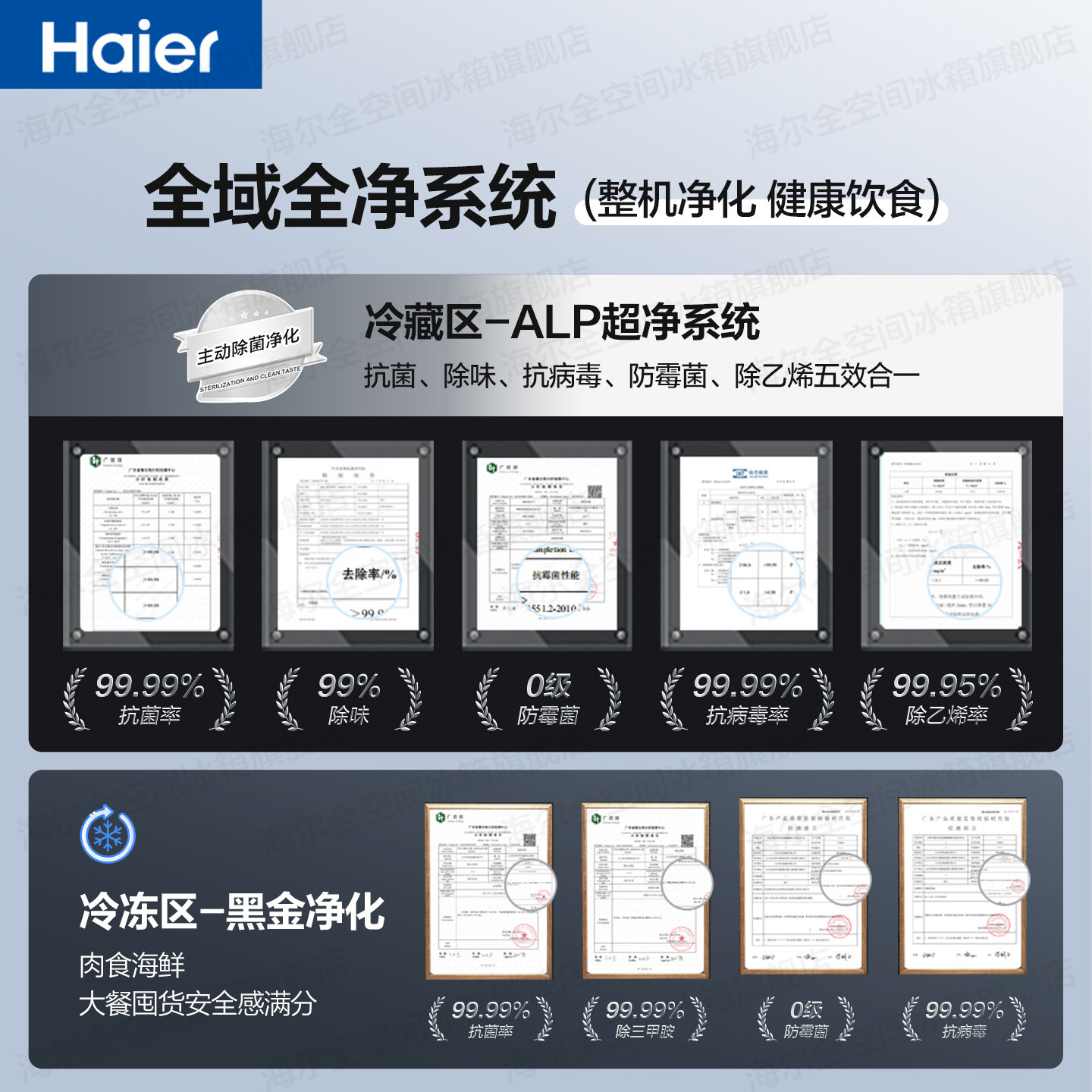 政府补贴海尔出品统帅476L十字对开四门风冷一级大容量家用电冰箱
