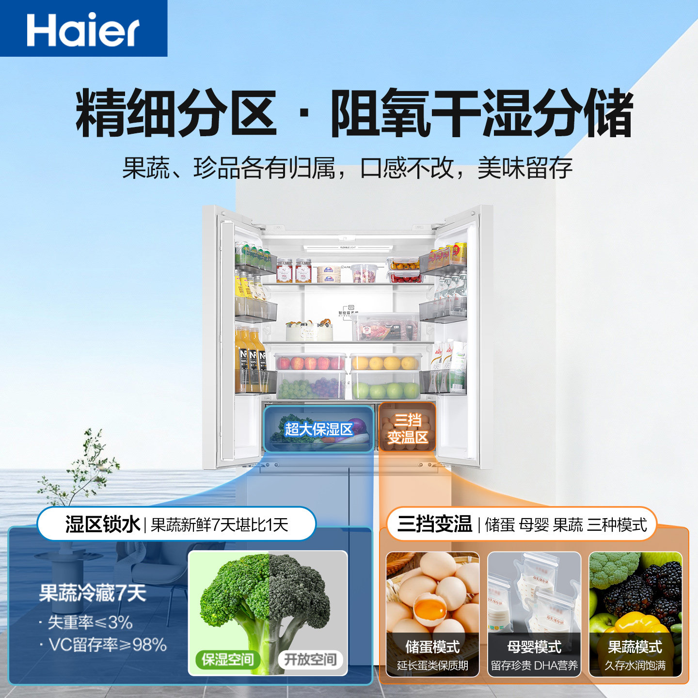 政府补贴海尔出品统帅345L彩晶法式四门多门一级小型家用冰箱官方