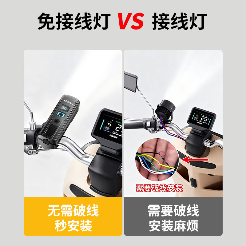 电动车灯超亮led大灯夜间免接线前灯电瓶外接灯改装自行车夜骑灯