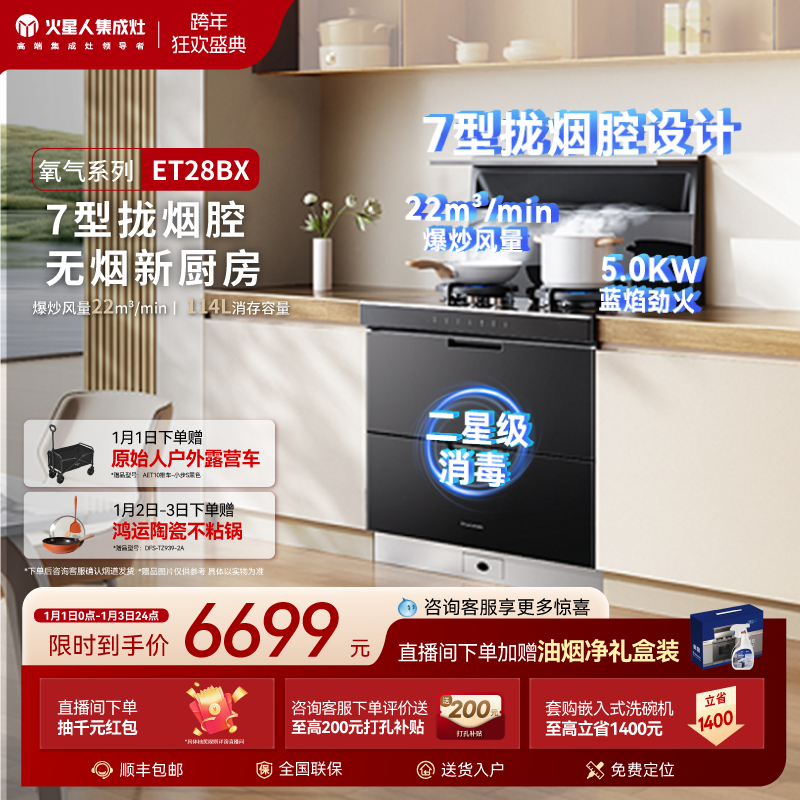 火星人ET28BX氧气系列集成灶家用厨房消毒柜一体油烟机燃气灶套装