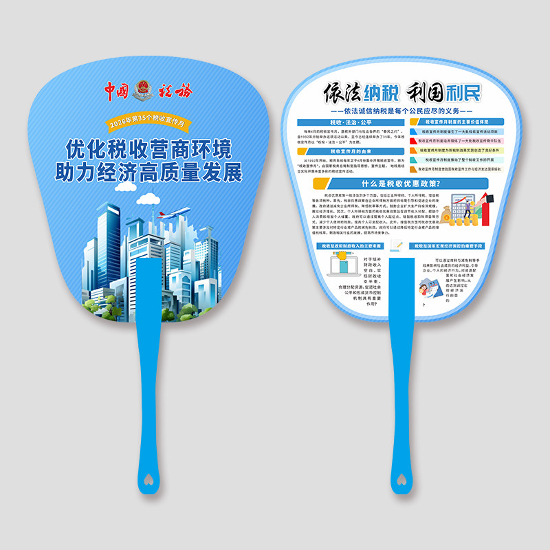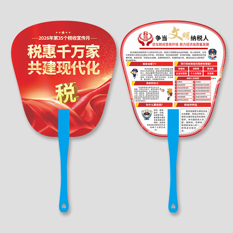 工商所行政服务大厅2026全国税收宣传月活动广告物料团扇pp扇子
