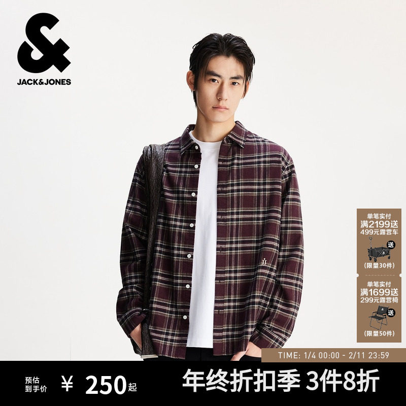杰克琼斯男装秋季新款纯棉舒适柔软刺绣宽松翻领长袖中性简约衬衫