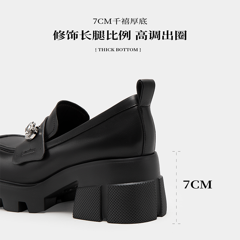 欧货真皮厚底小皮鞋女英伦风圆头加绒德比鞋小个子增高乐福鞋单鞋