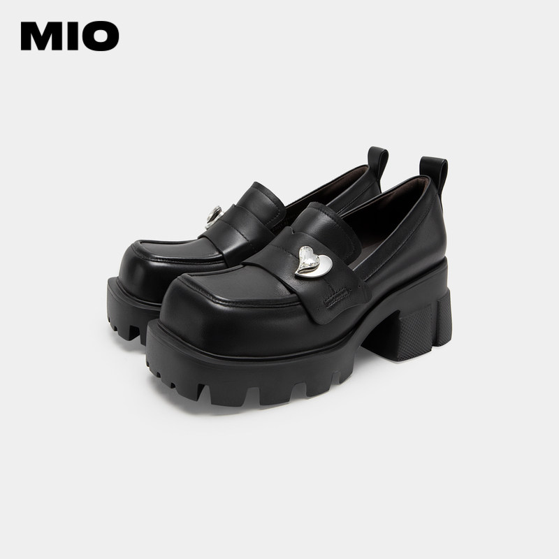 [沈月同款]MIO米奥女鞋方跟单鞋厚底英伦风豆豆鞋爱心钻饰乐福鞋