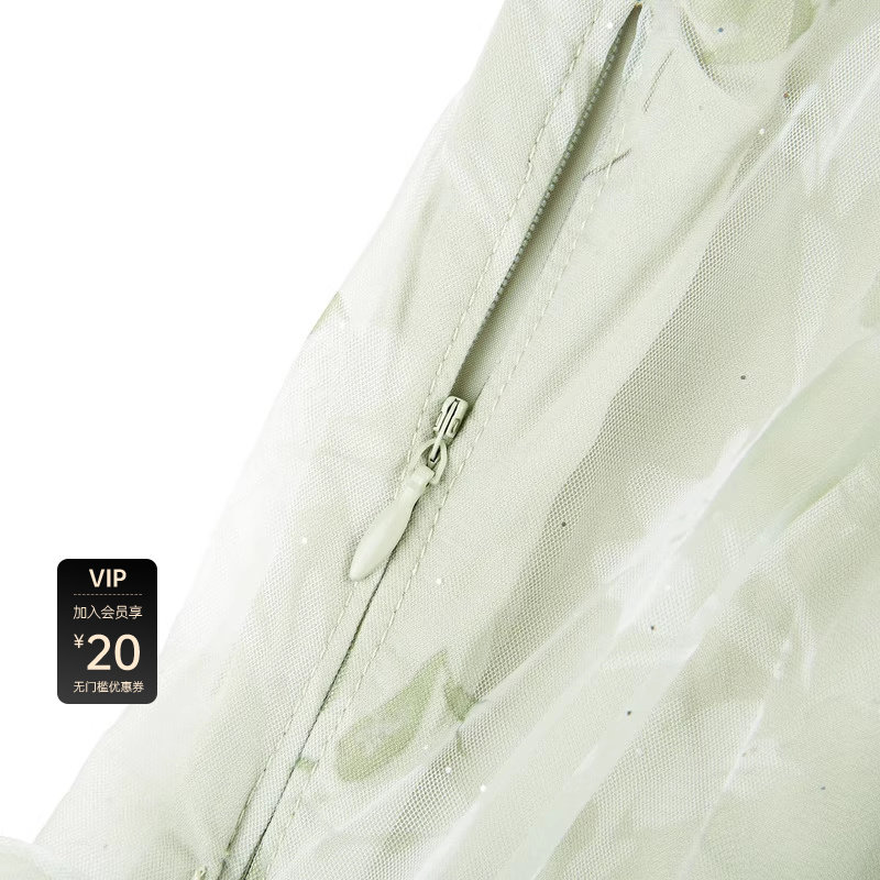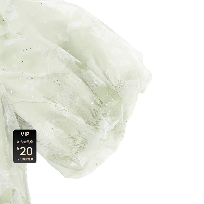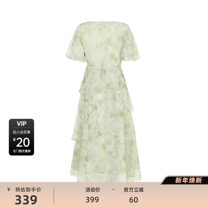田园风连衣裙 水墨晕染 收腰泡泡袖