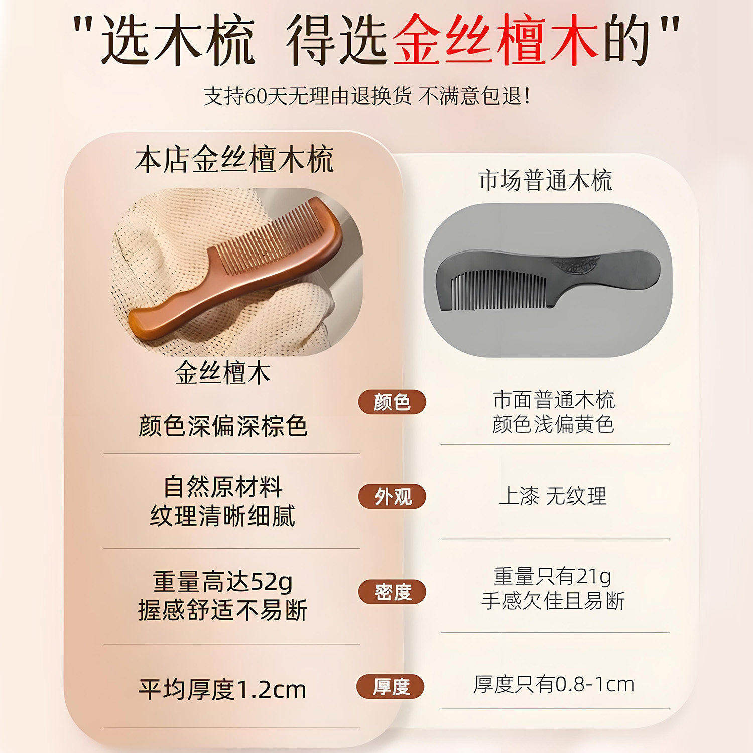 2025新款檀木小梳子伴手礼盒高端送女朋友学生宿舍儿童孩家用便携