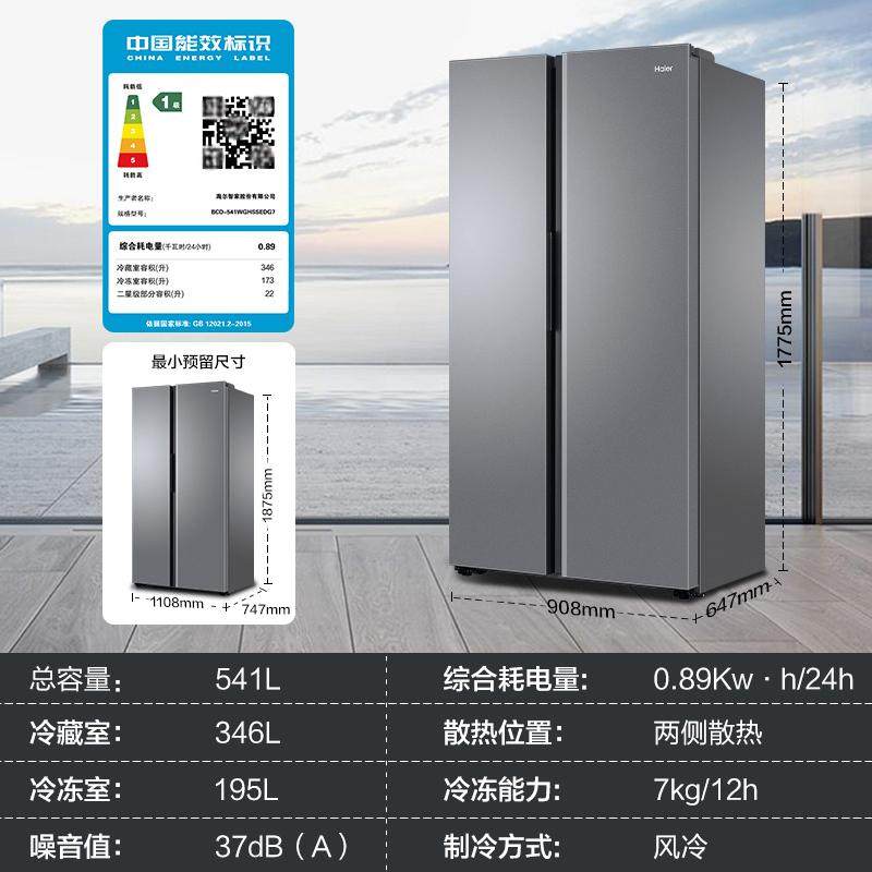 海尔一级能效对开双开门大容量风冷无霜家用冰箱BCD-541WGHSSEDG7