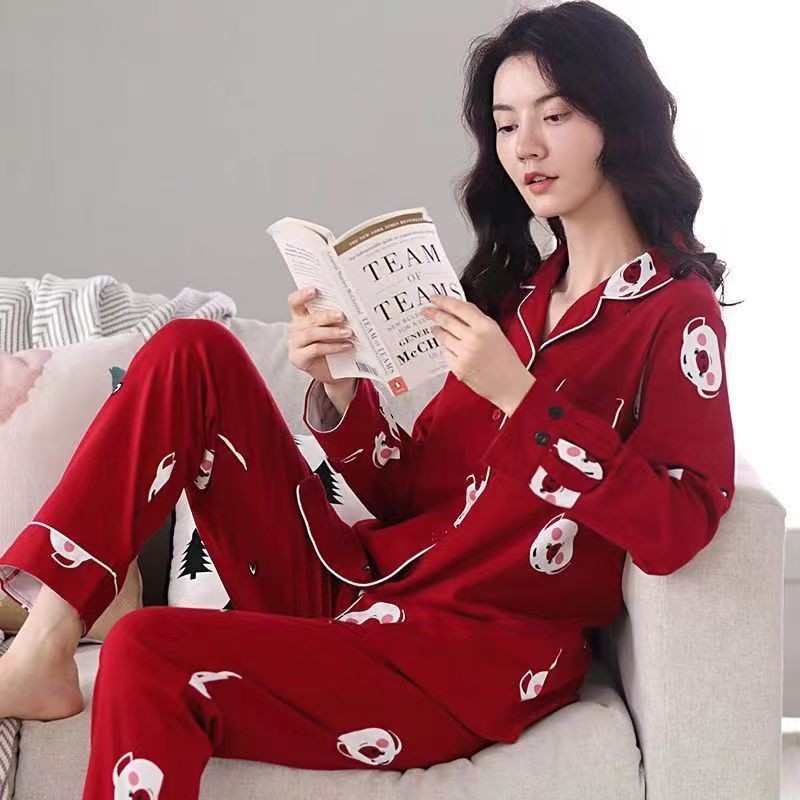 纯棉睡衣女长袖翻领套装秋冬季全棉薄款女士宽松家居服可外穿居家
