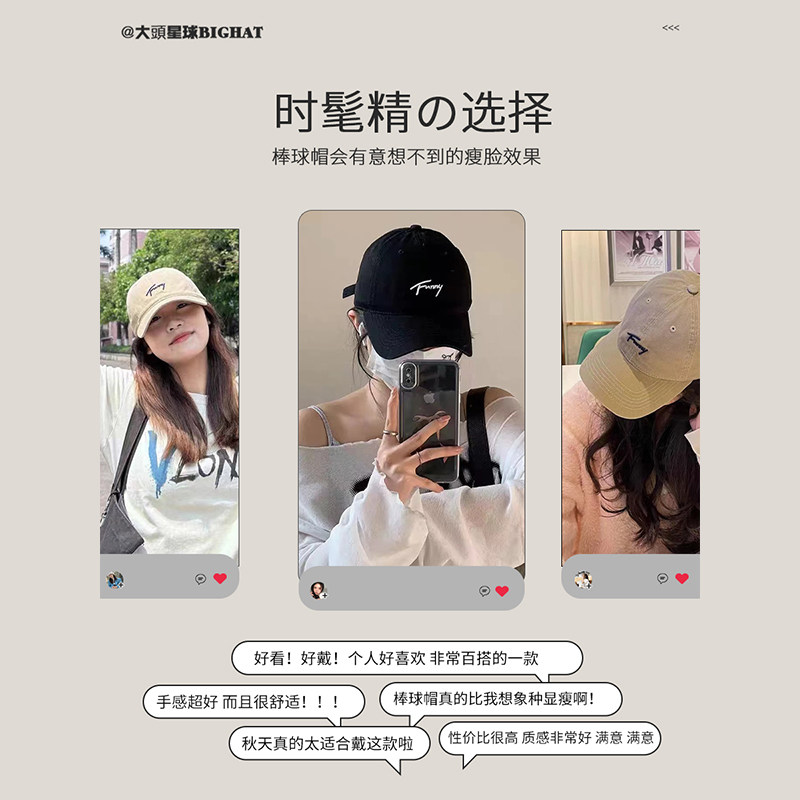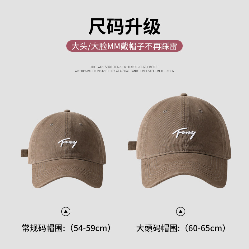 美式复古字母灰色棒球帽女高级感宽檐大头围显脸小百搭鸭舌帽子男