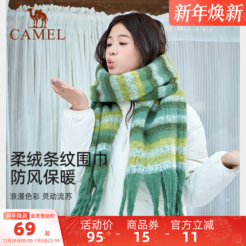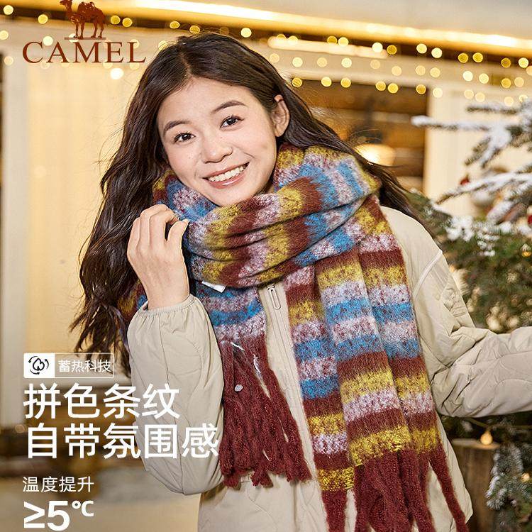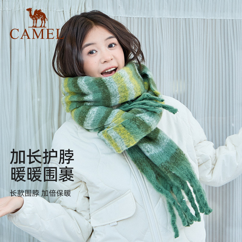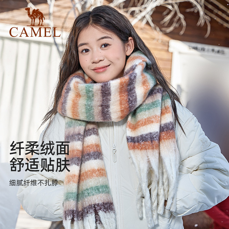 骆驼围脖女2025秋冬韩版潮百搭马海毛格子围巾情侣围脖保暖高级感