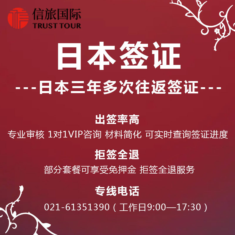 日本·三年多次旅游签证·上海送签·中信信旅日本签证三年多次个人旅游签证上海送签材料简化加急拒签全退