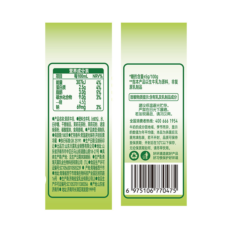 天露茉莉雪芽牛奶饮料200ml*10盒/提风味生牛乳>80%礼盒装
