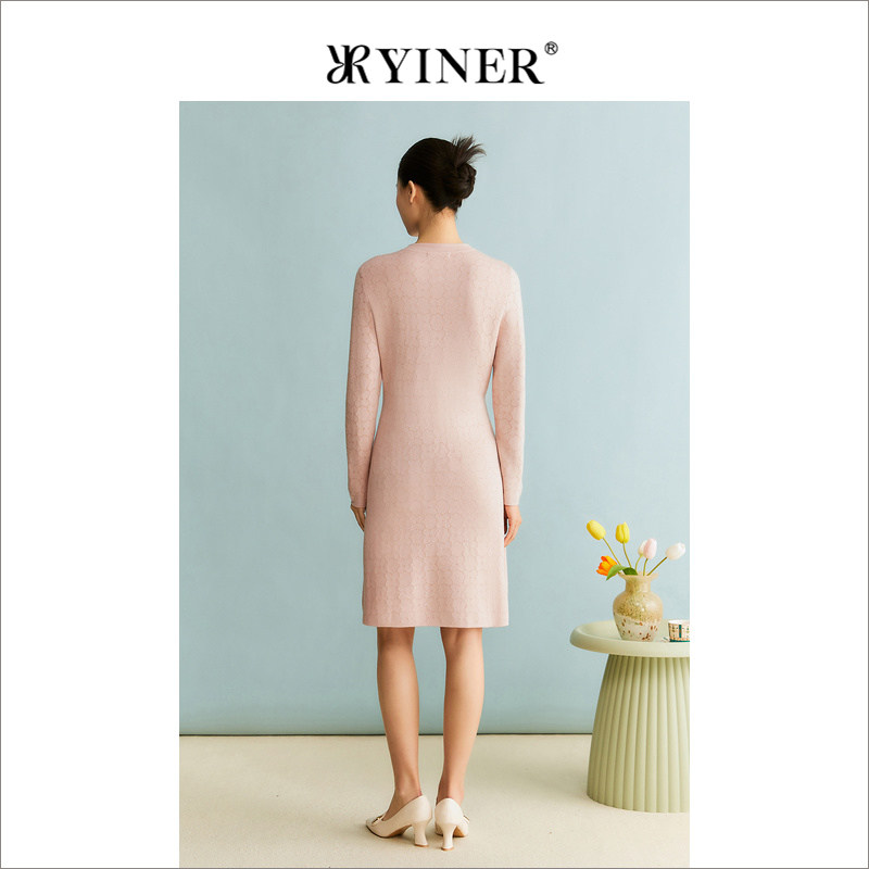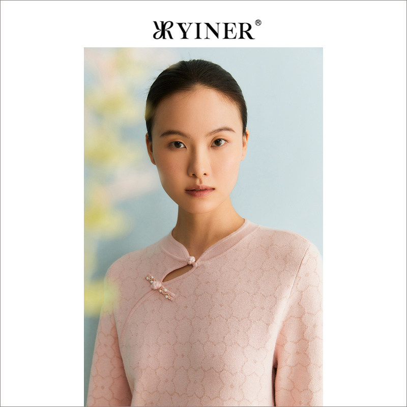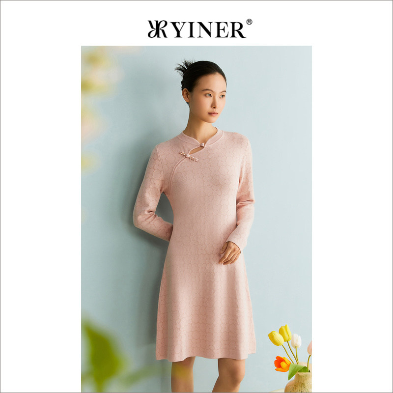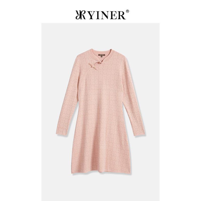 YINER音儿专选女装冬季国风新中式盘扣亮丝针织连衣裙