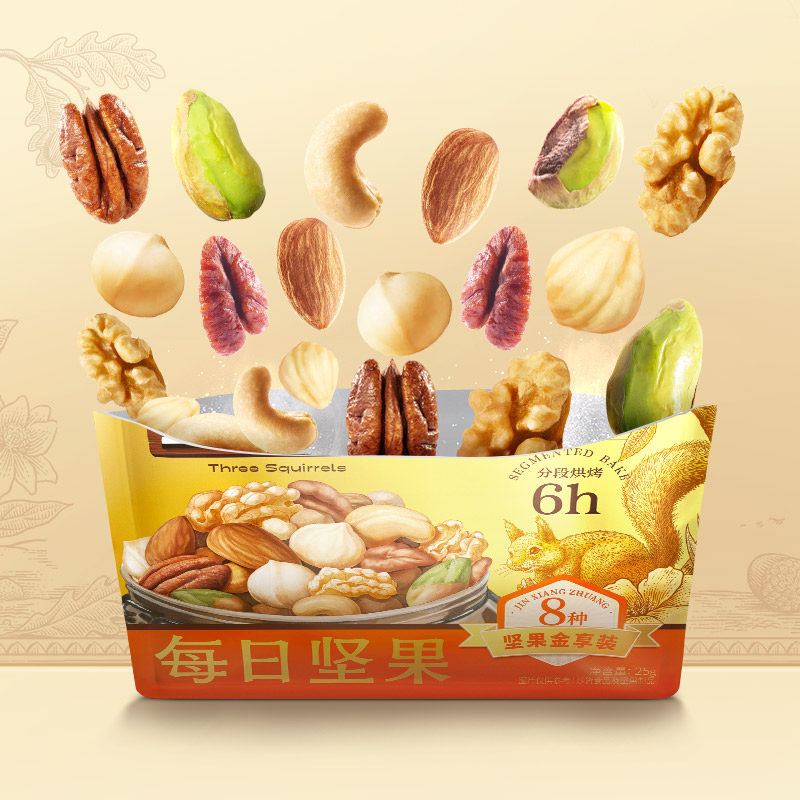 【主播推荐】三只松鼠坚果橙金款每日坚果750g8种纯坚果休闲零食