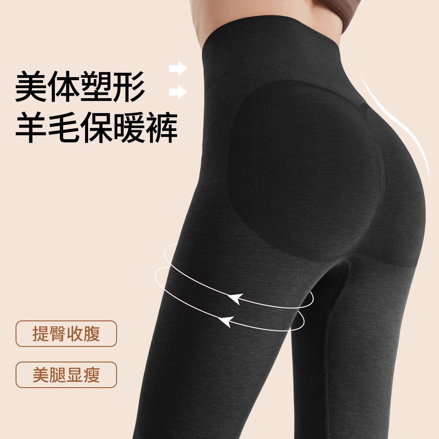 羊毛蚕丝秋裤女加厚加绒德无痕发热高腰保暖裤女羊毛棉裤打底裤冬