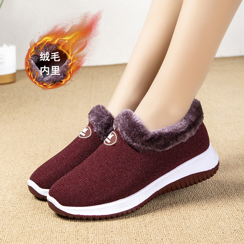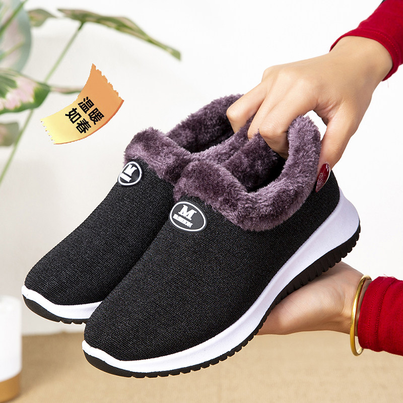 新款老北京布鞋女加绒保暖软底妈妈棉布鞋老人冬季防滑鞋子平底