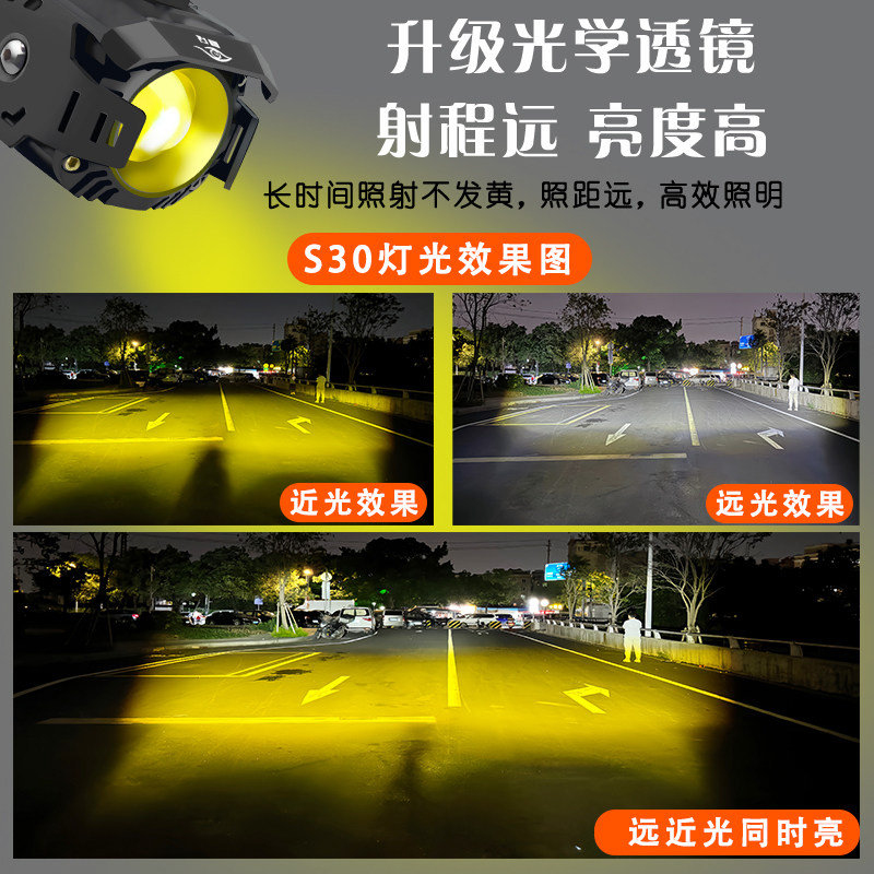 幻瞳S30摩托车电动车外置踏板专用激光射灯强光款远近光透镜射灯