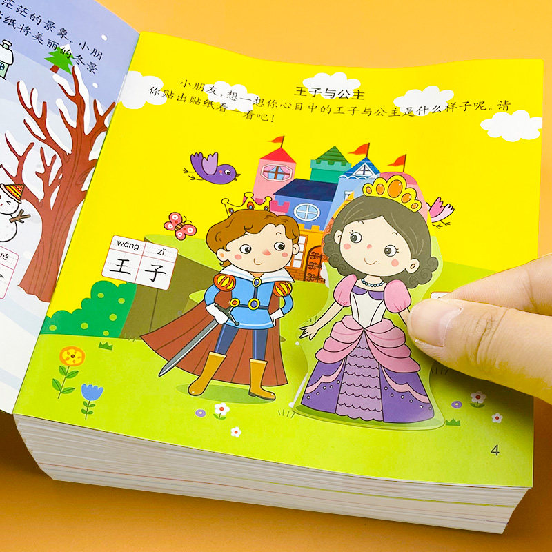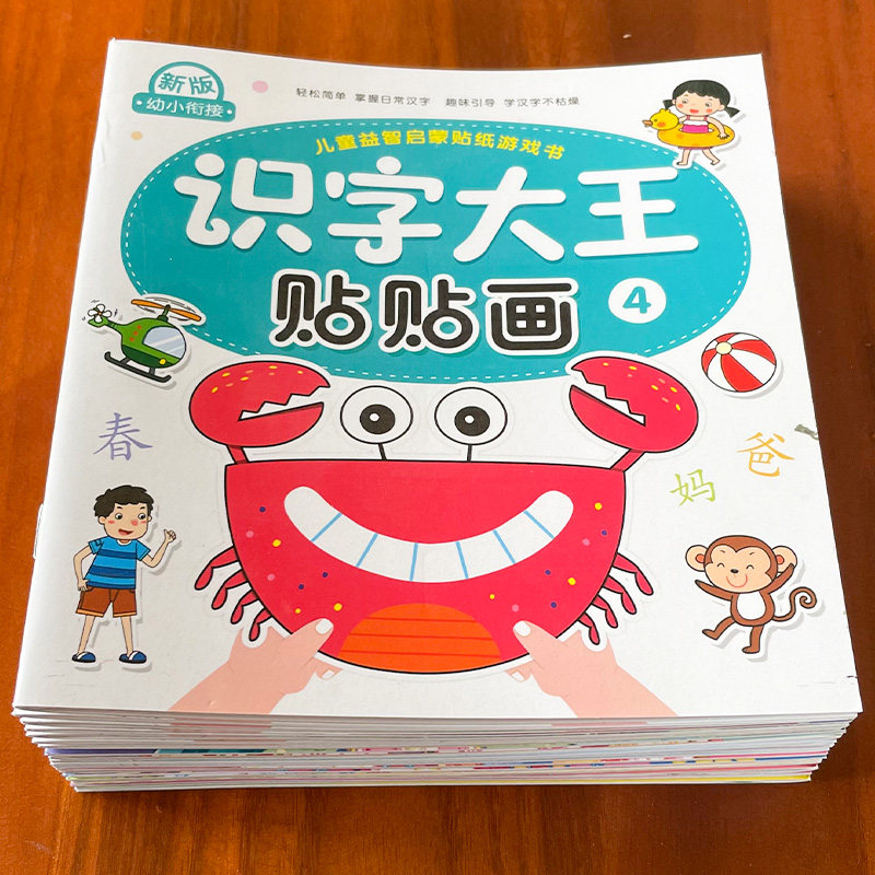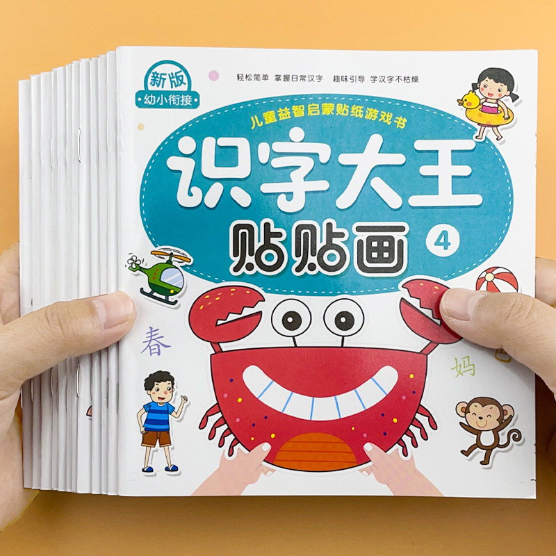 识字大王贴纸书正版幼儿学前认字益智玩具2到3-4-5-6岁幼儿园宝宝卡通贴贴画男女孩专注力训练粘帖画贴贴纸