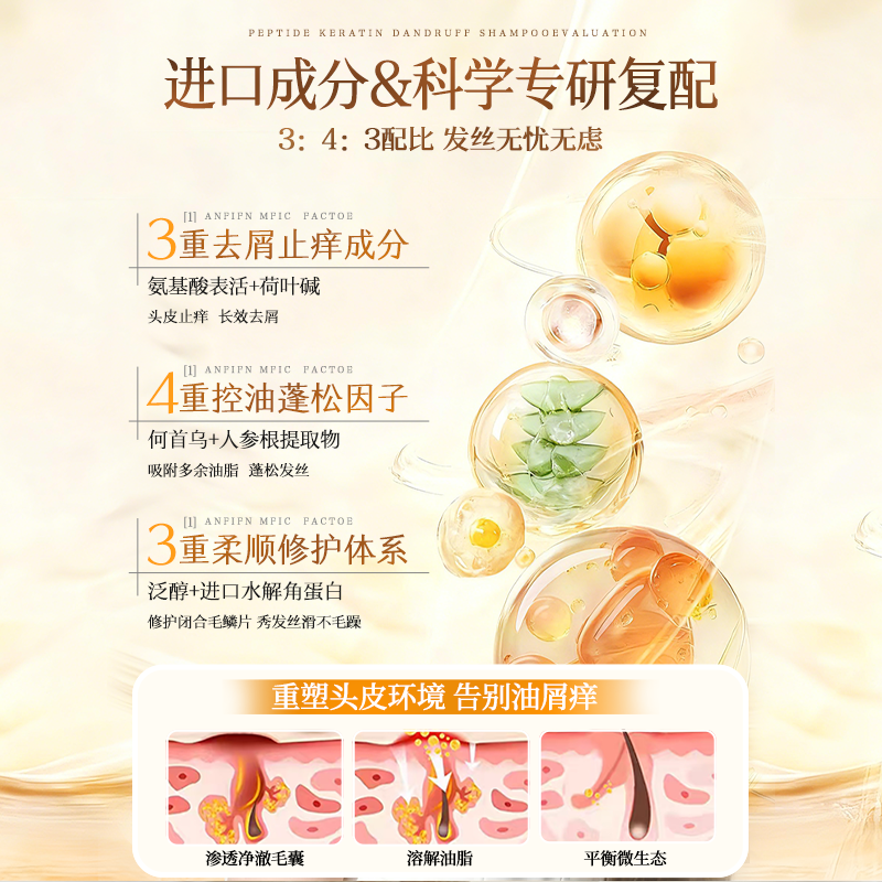 多肽洗发水控油蓬松去屑止洗发露洗头膏柔顺官方品牌正品痒女男士