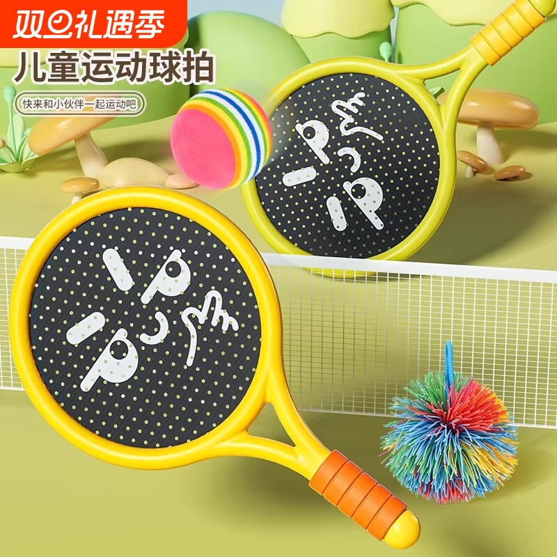 儿童羽毛球拍室内训练弹弹球亲子互动静音运动网球拍益智健身娱乐