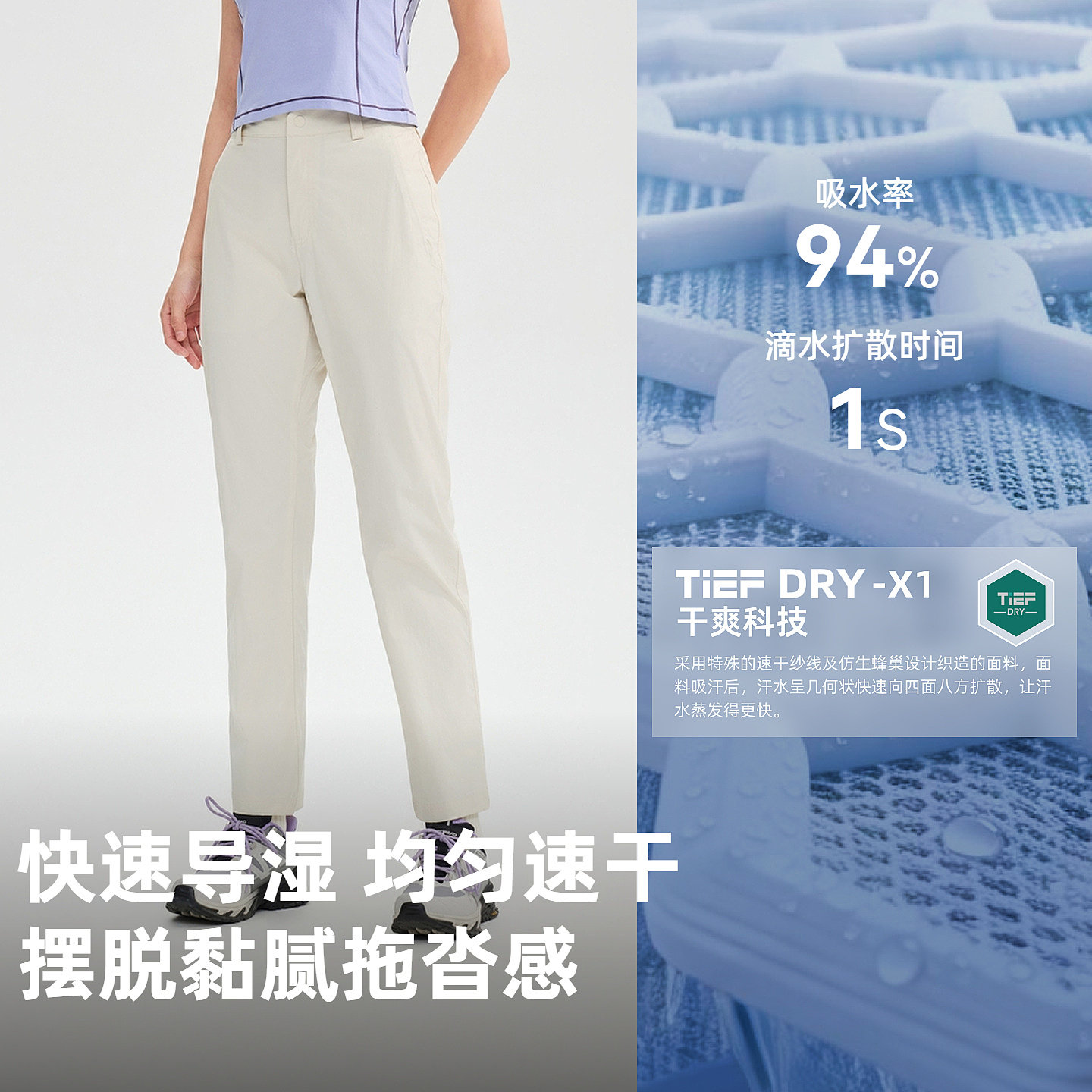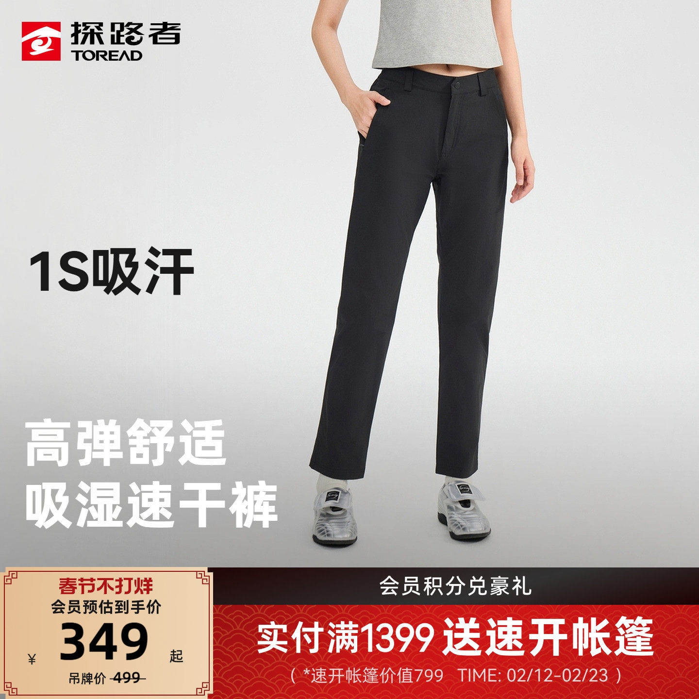 探路者功能裤女吸湿速干高弹舒适轻盈透气户外徒步登山运动长裤男