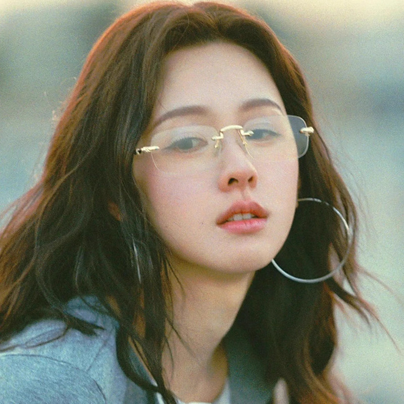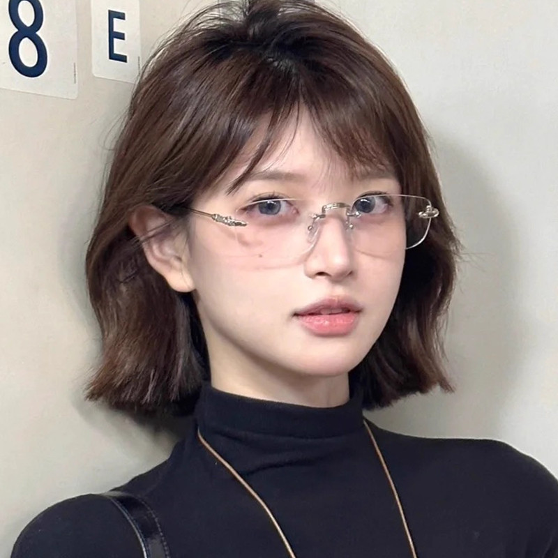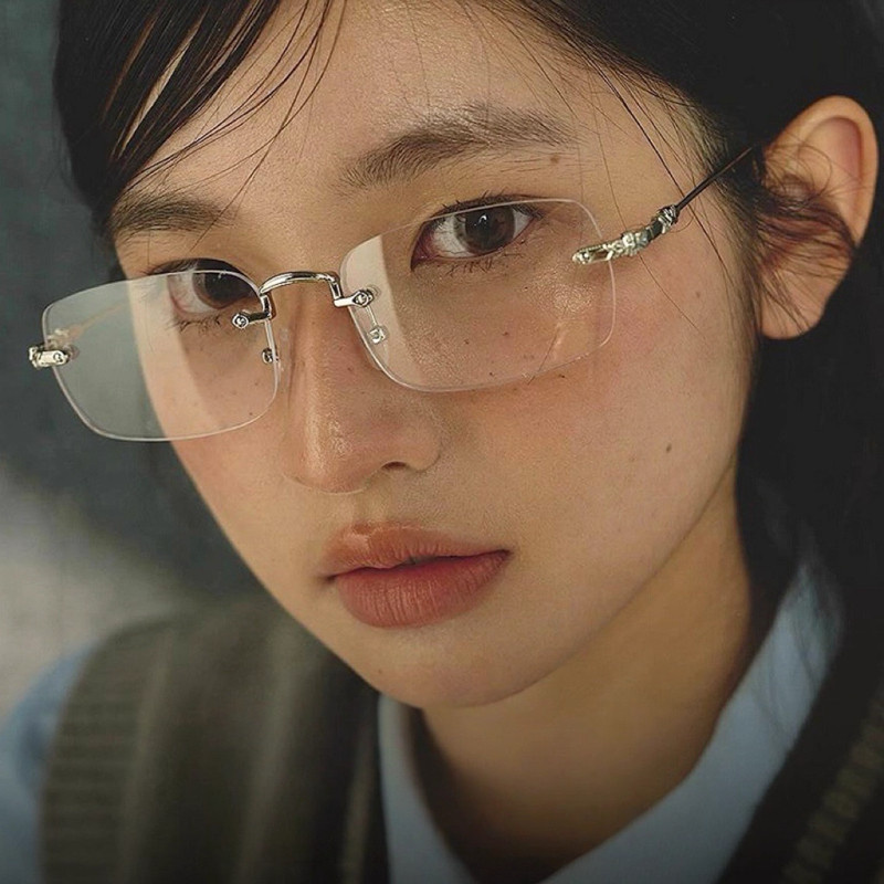 陈都灵同款纯欲无边框眼镜架近视女度数防蓝光高级感超轻素颜无框