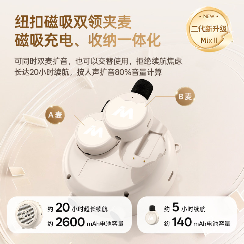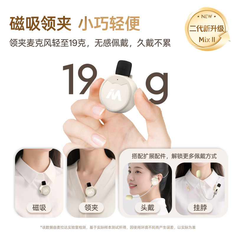 磁吸领夹、扩音仅102克、音量大、防啸叫