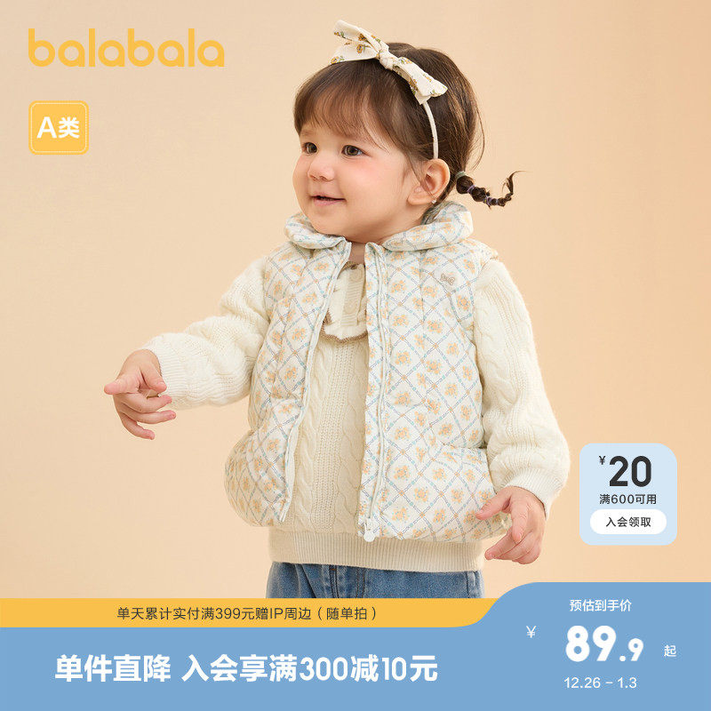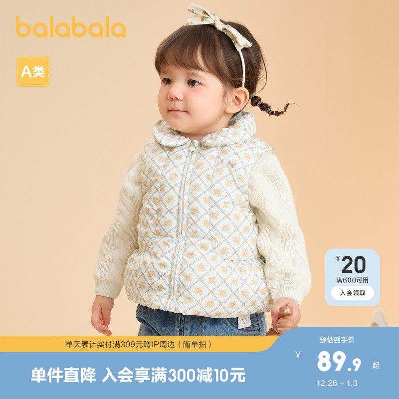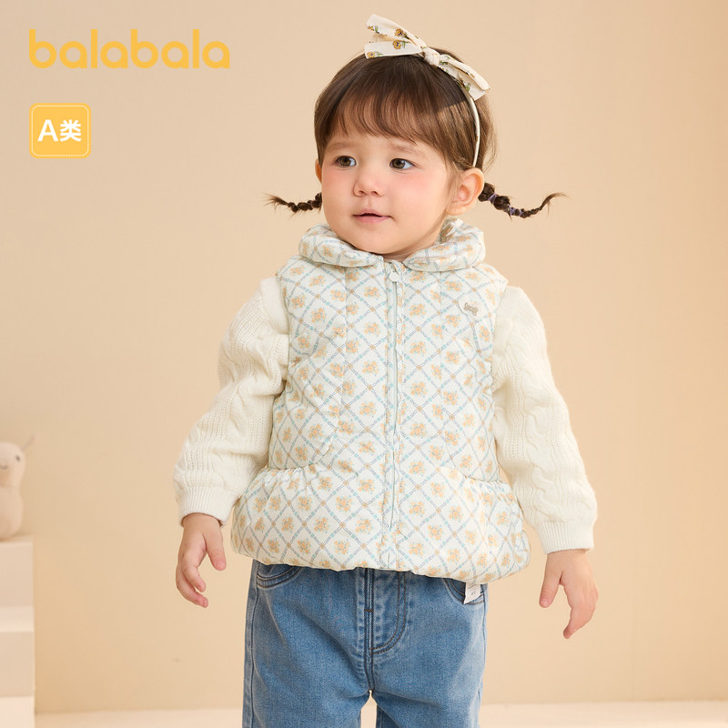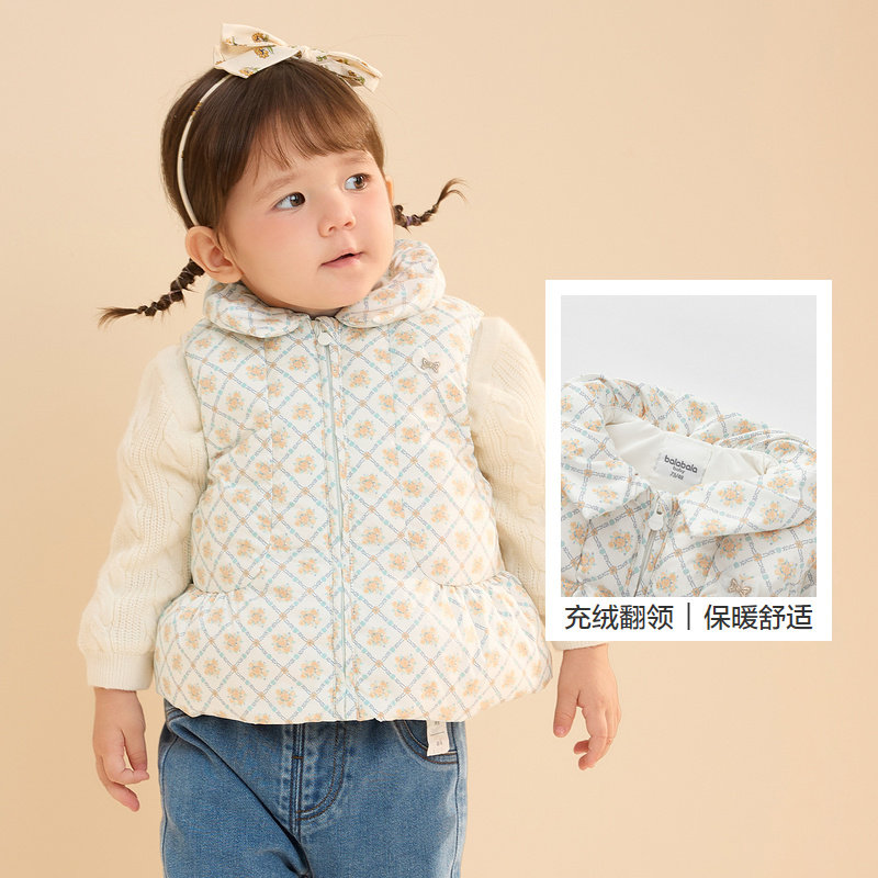 巴拉巴拉宝宝马甲外穿冬装女童背心羽绒服保暖小A版型甜美可爱萌