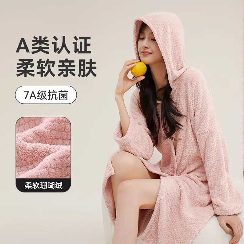 加厚浴袍可穿式带帽浴裙成人洗澡浴衣吸水家居服带帽睡袍宽松长款