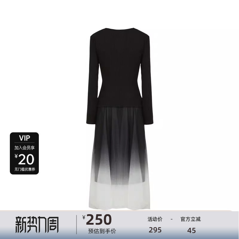 sdeer圣迪奥女装秋圆领交叉收腰网纱针织吊带裙套装S241Z1410