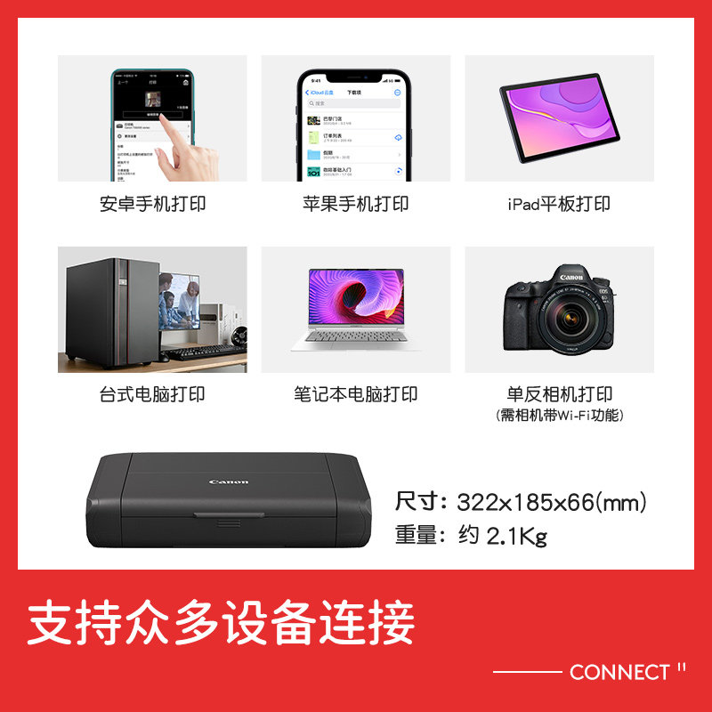 便携式TR150彩色打印机A4佳能喷墨tr160小型家用迷你移动手提办公合同协议专业外带手机无线WiFi照片车载电池