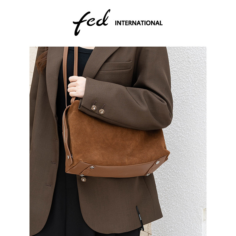 fed麂皮工拼接双面磨砂皮反绒皮面单肩斜挎枕头包腋下包BFA9411