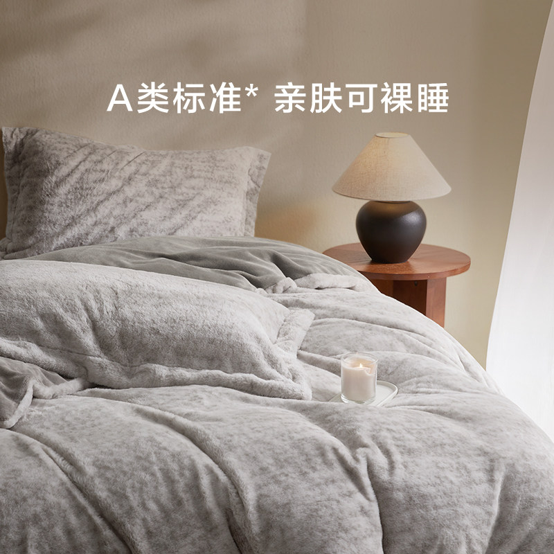罗莱家纺25秋冬新品长毛绒慕斯绒双面暖绒加厚被套双人床四件套