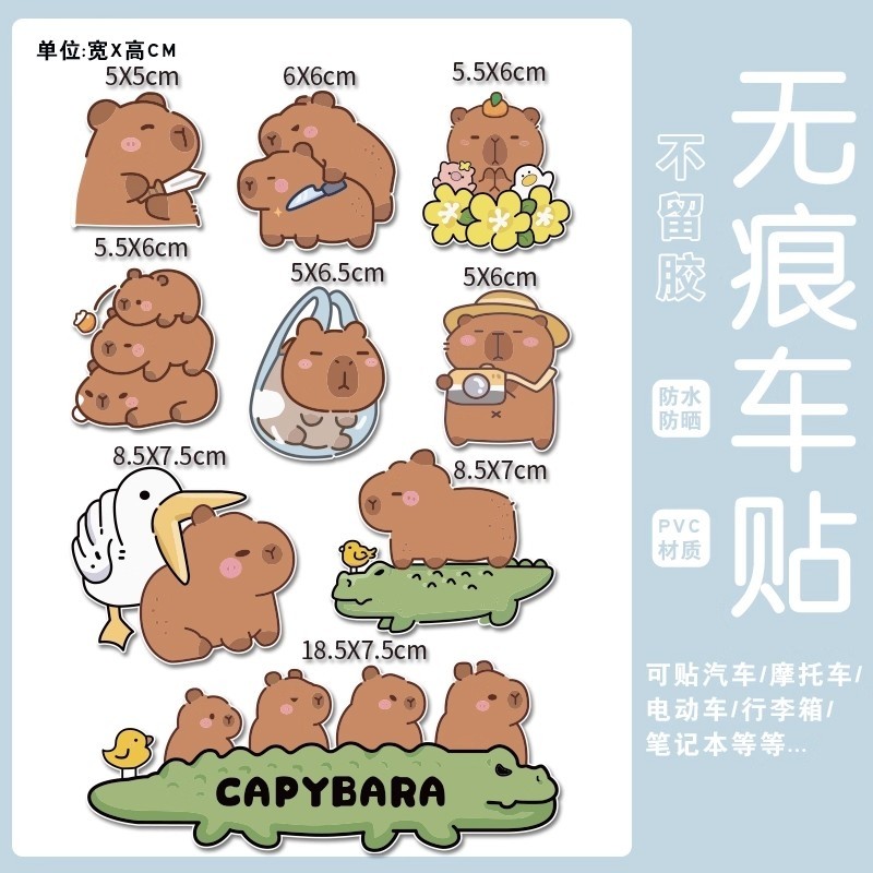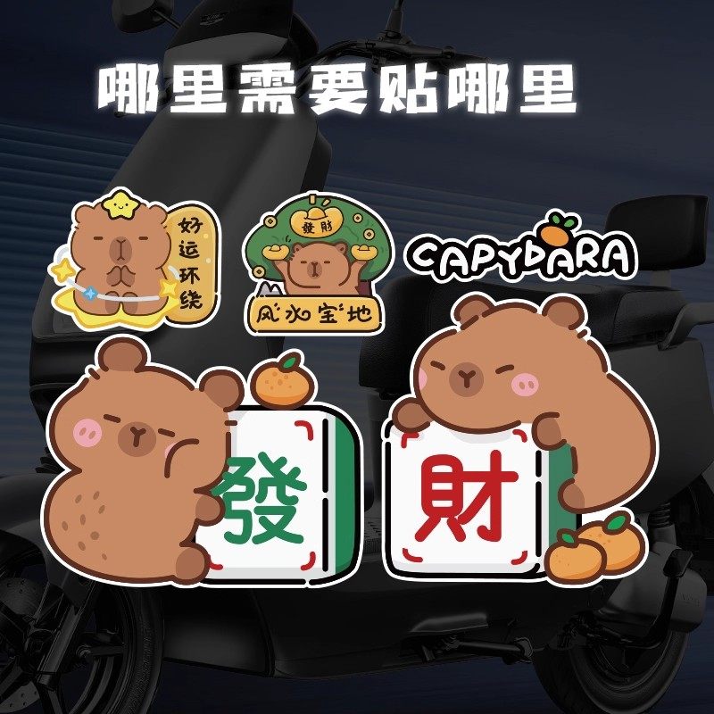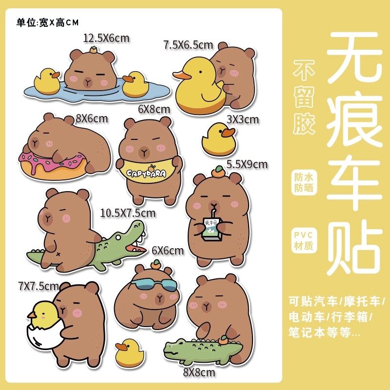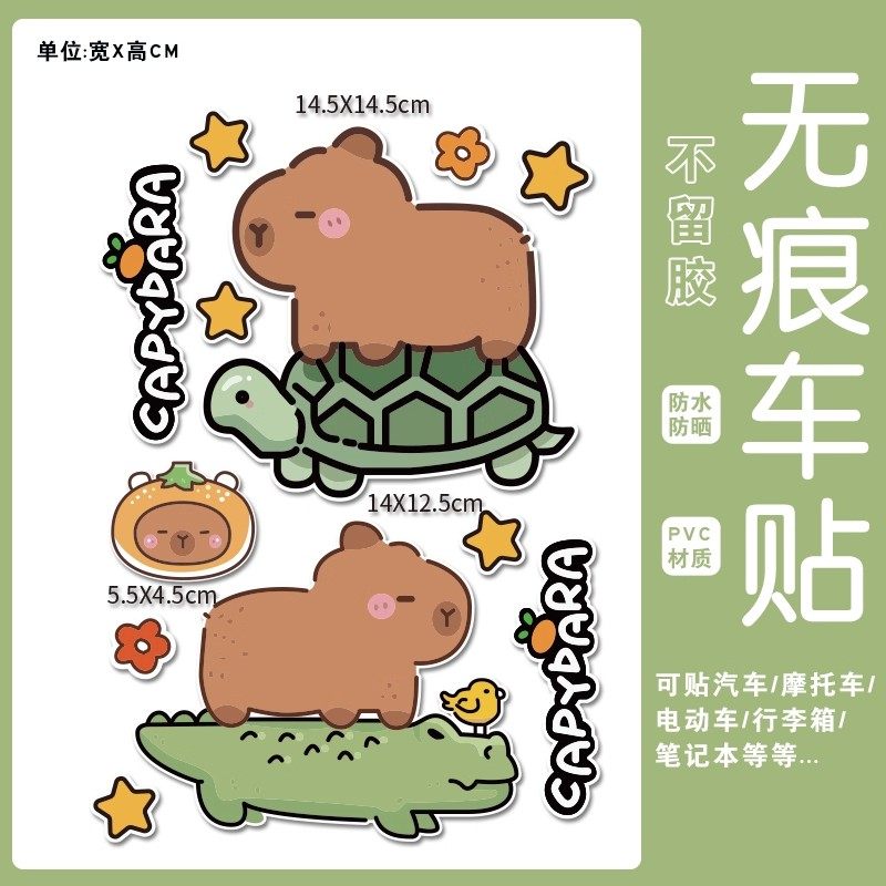 卡通卡皮巴拉汽车车贴电动车贴纸可爱水豚鼠个性划痕贴装饰贴