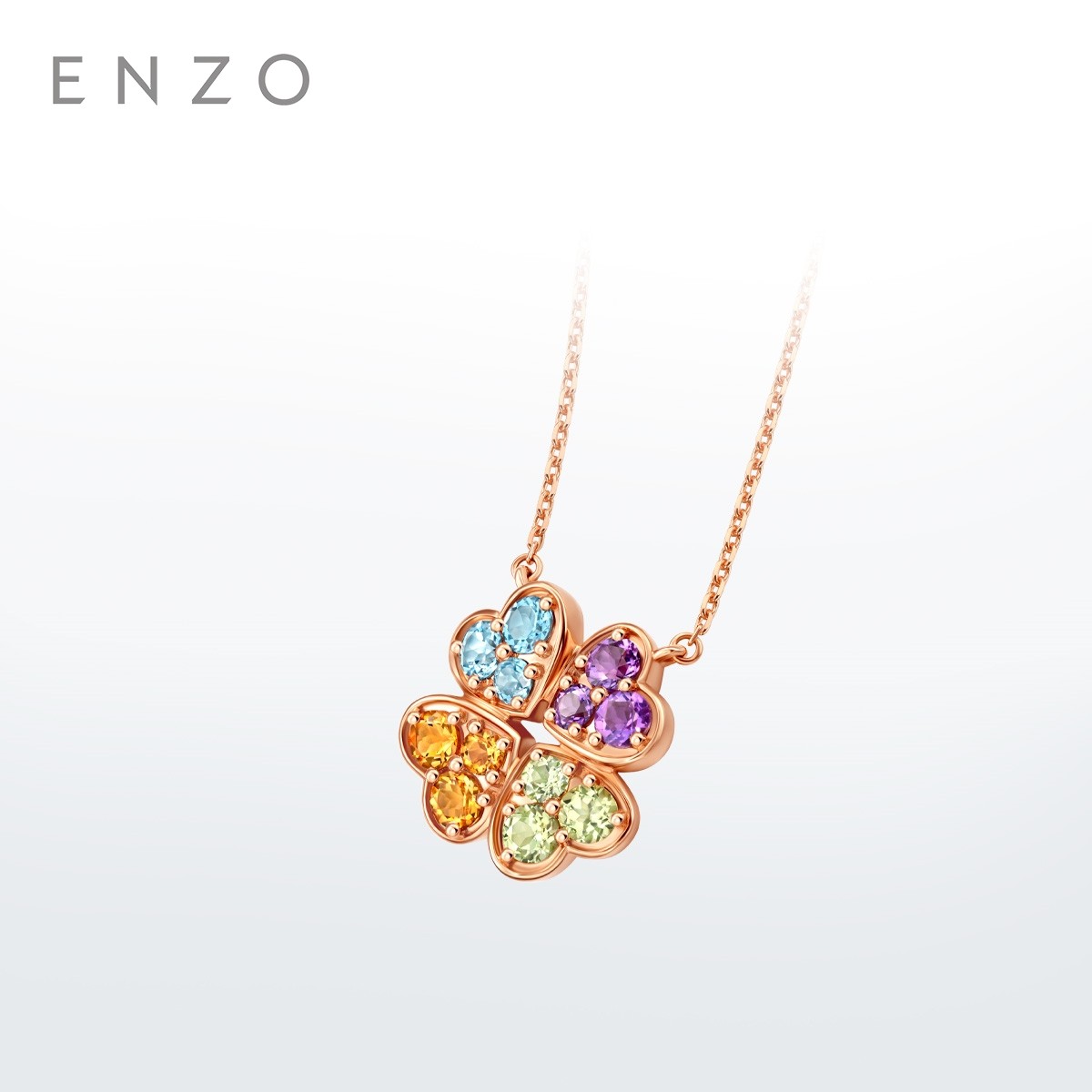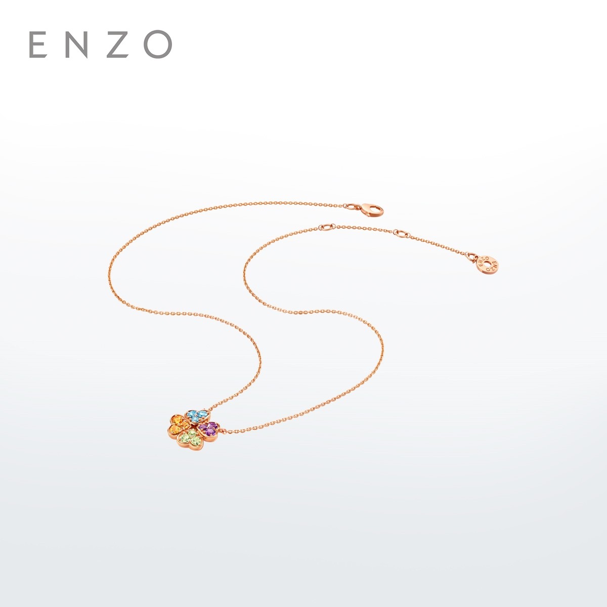 新款ENZO 彩虹四叶草18K金多彩宝石项链女EZV8987新春礼物