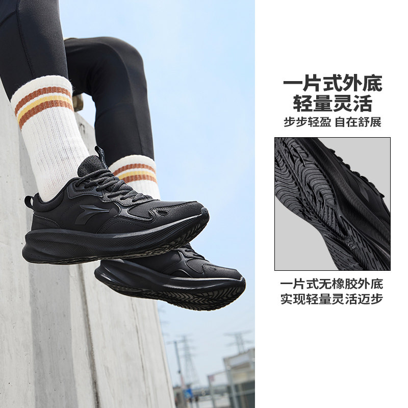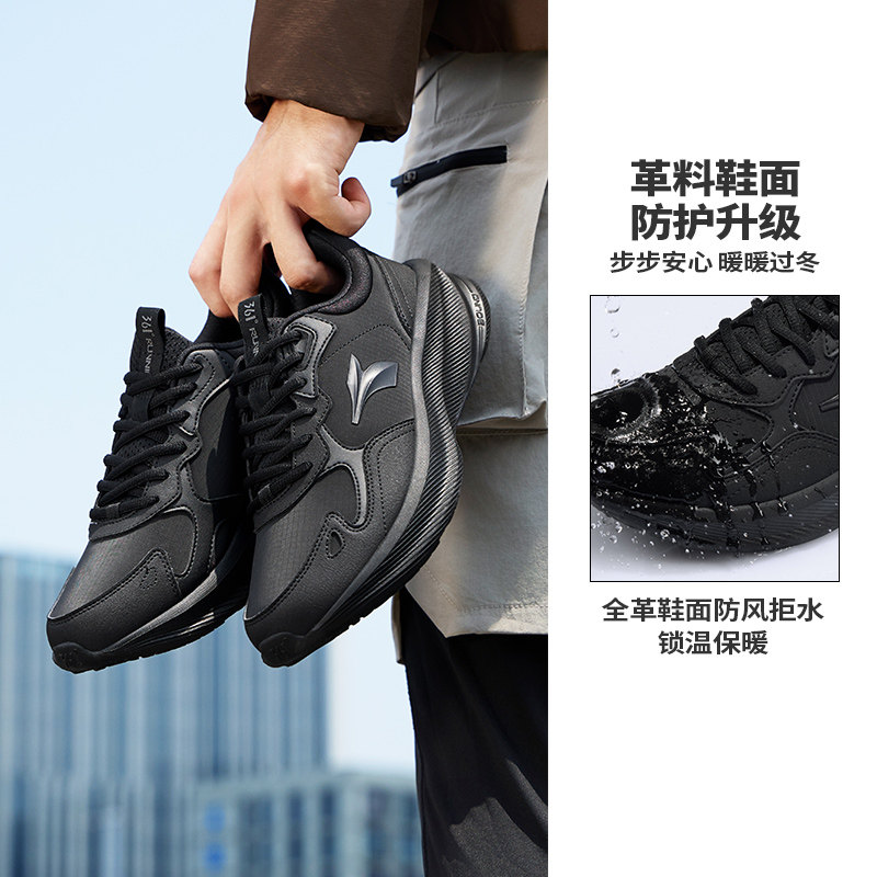 安踏男鞋运动鞋男款冬季新款官方旗舰正品黑色皮面男士跑步鞋子男