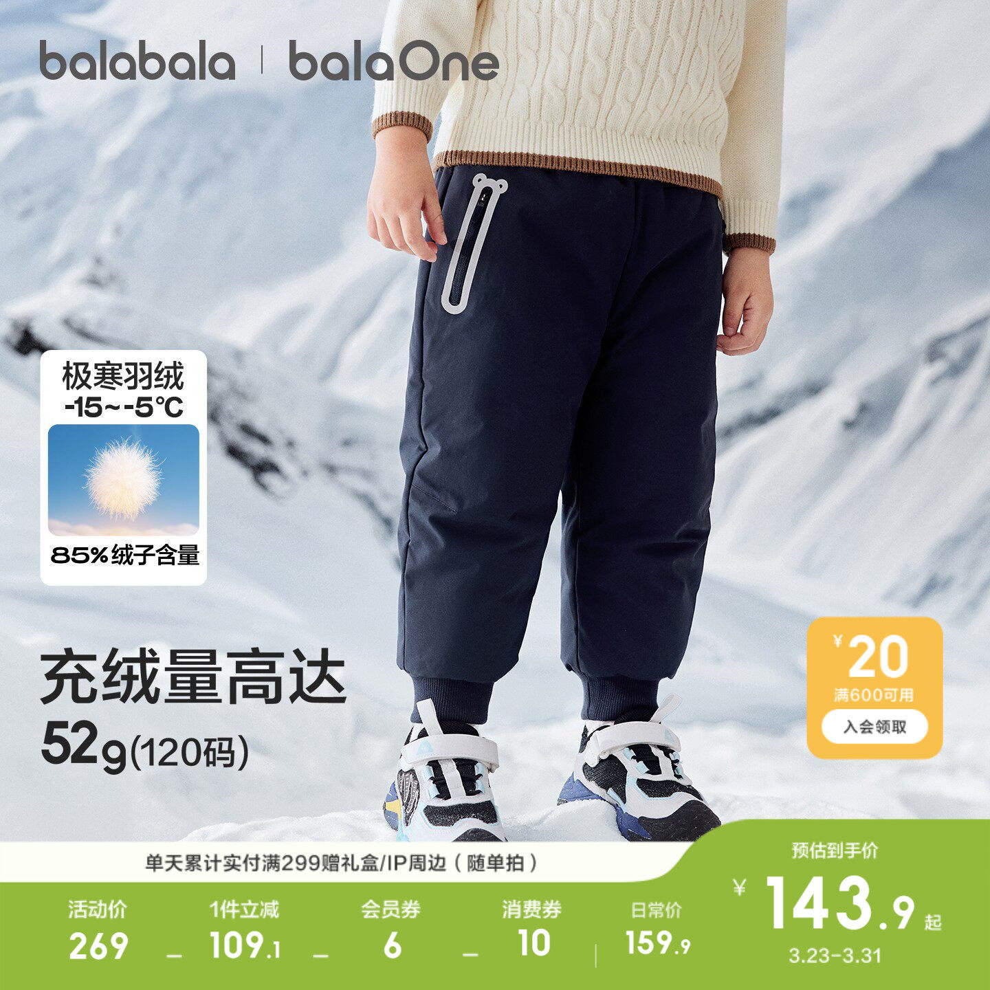 巴拉巴拉童装儿童羽绒裤男童女童2026休闲冬装宝宝保暖加厚长裤子