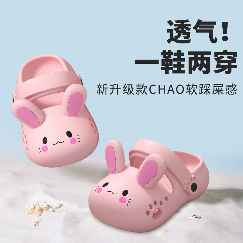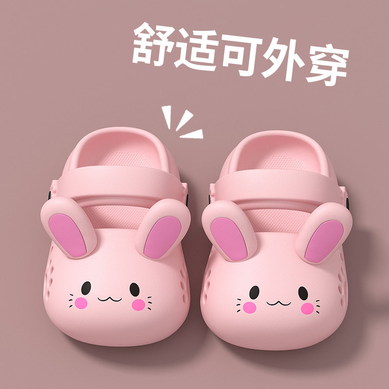 卡通小兔踩屎感洞洞鞋女童2026新款夏季外穿防滑亲子宝宝包头凉拖