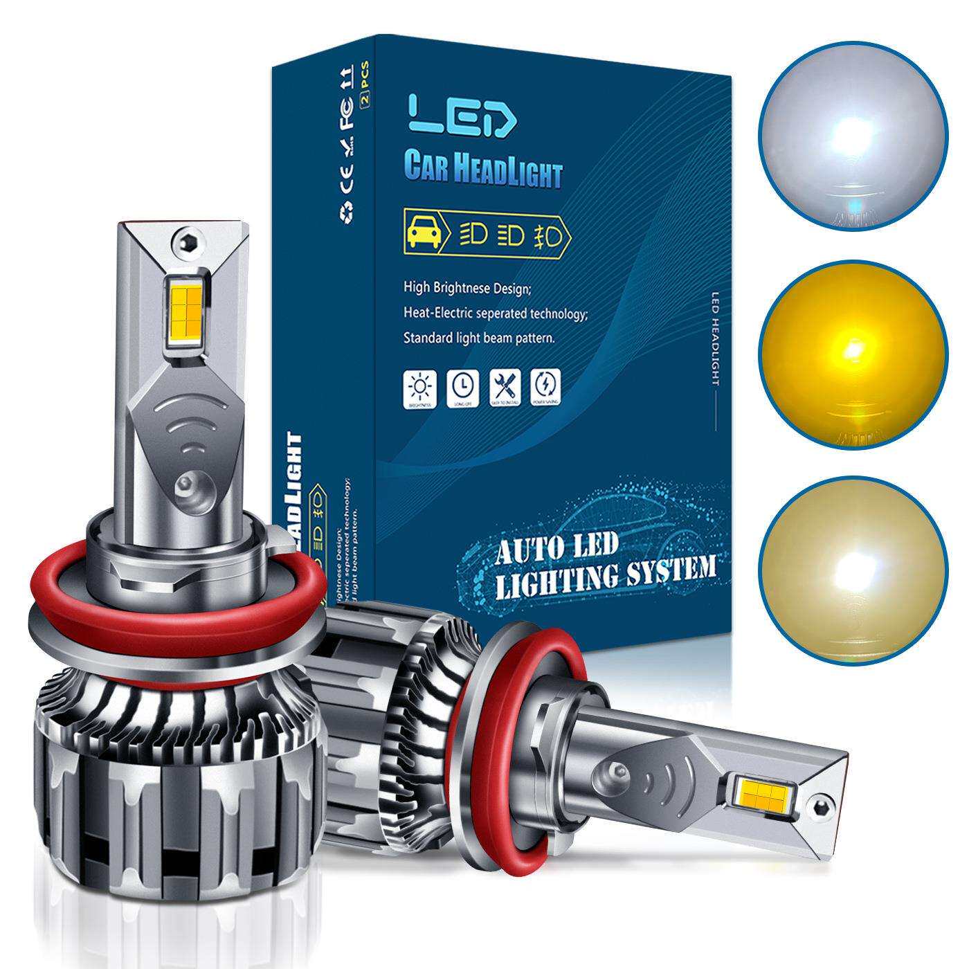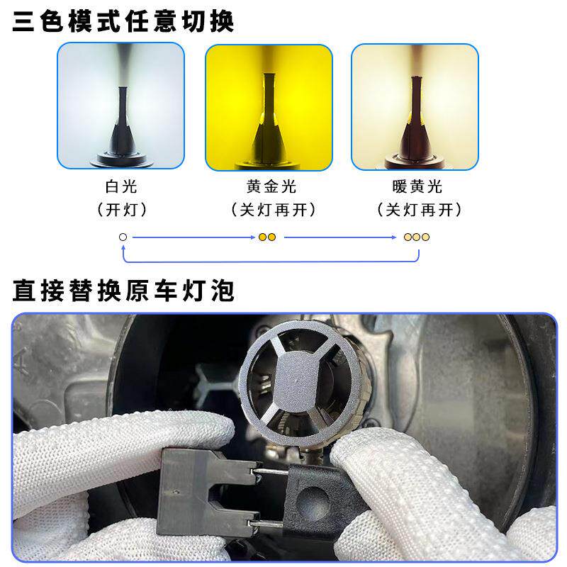 三色高亮汽车LED大灯12v24v远光近光灯H7H1 H4 H11白光黄金眼灯泡
