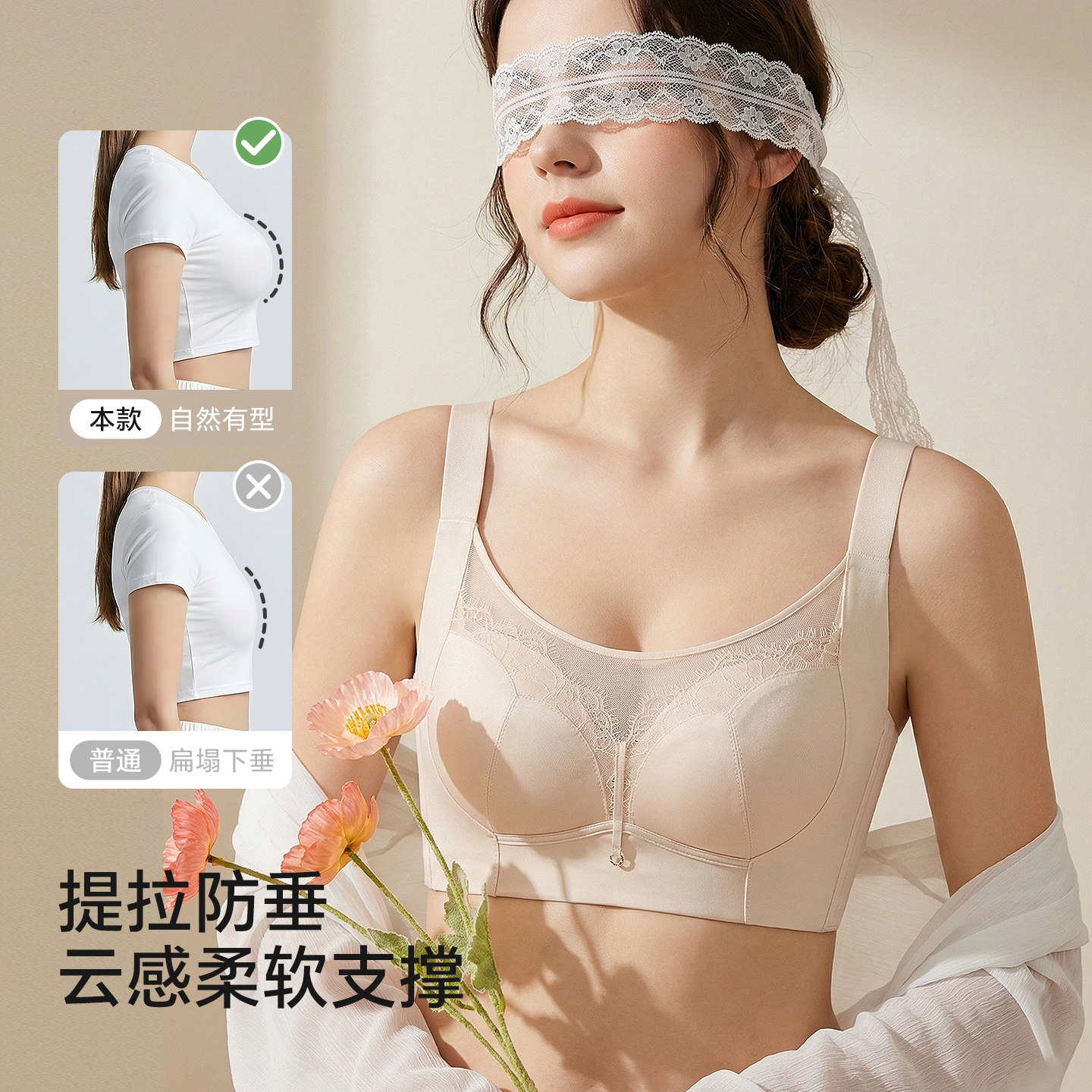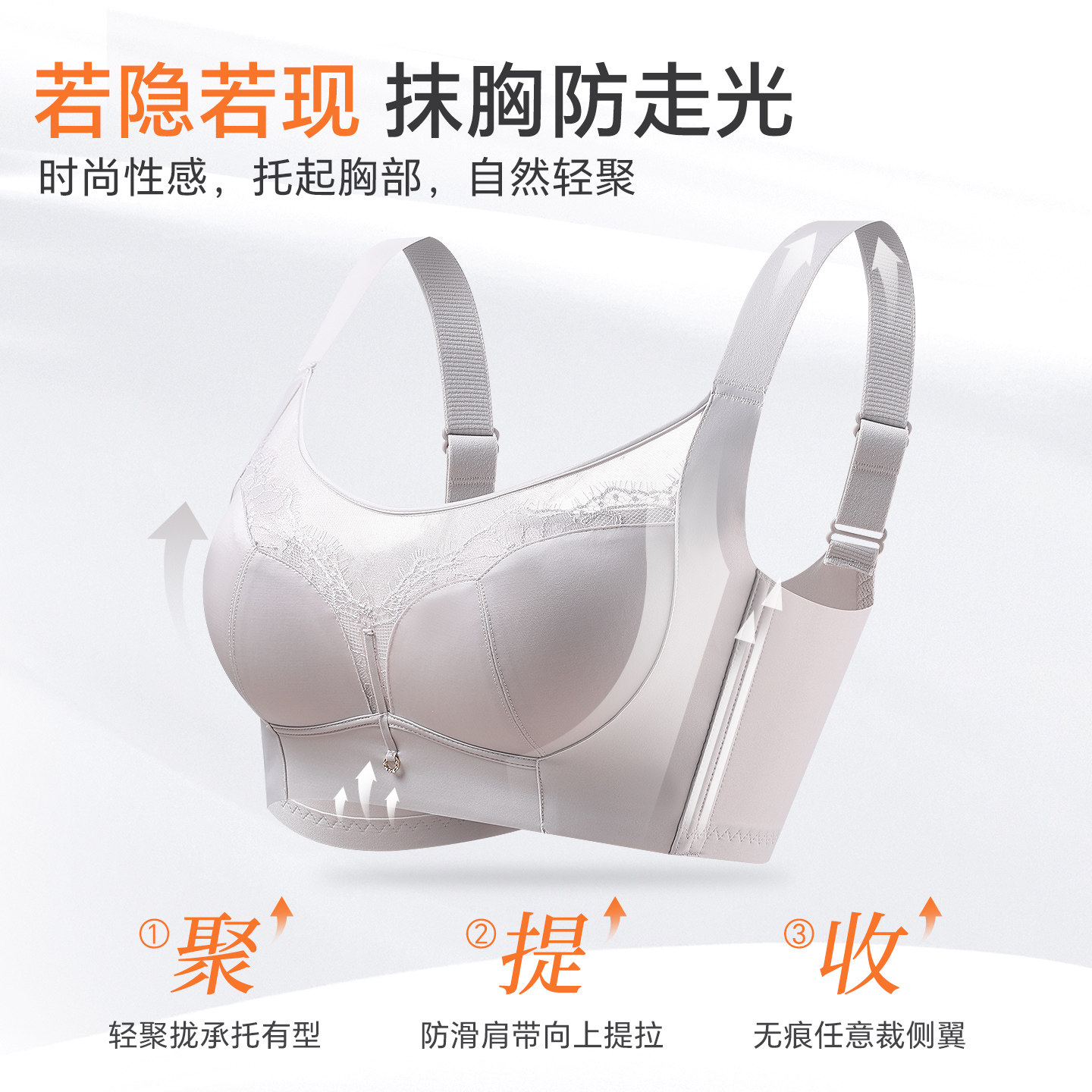 润微提拉内衣女大胸显小无痕提拉防下垂聚拢收副乳胸罩爆款文胸