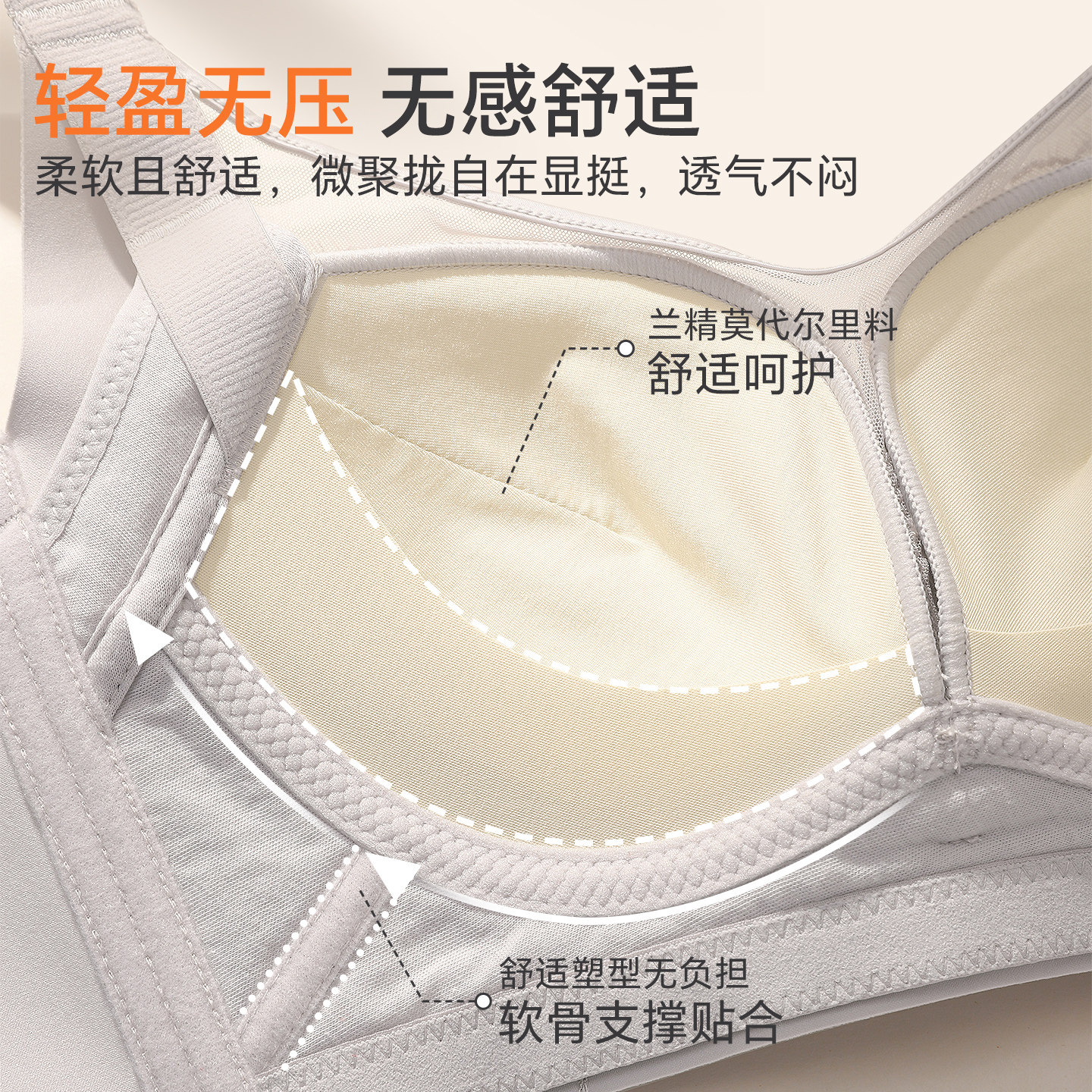 华熙玻尿酸菇娘家软支撑内衣大胸聚拢收副乳防下垂无痕粉底液文胸