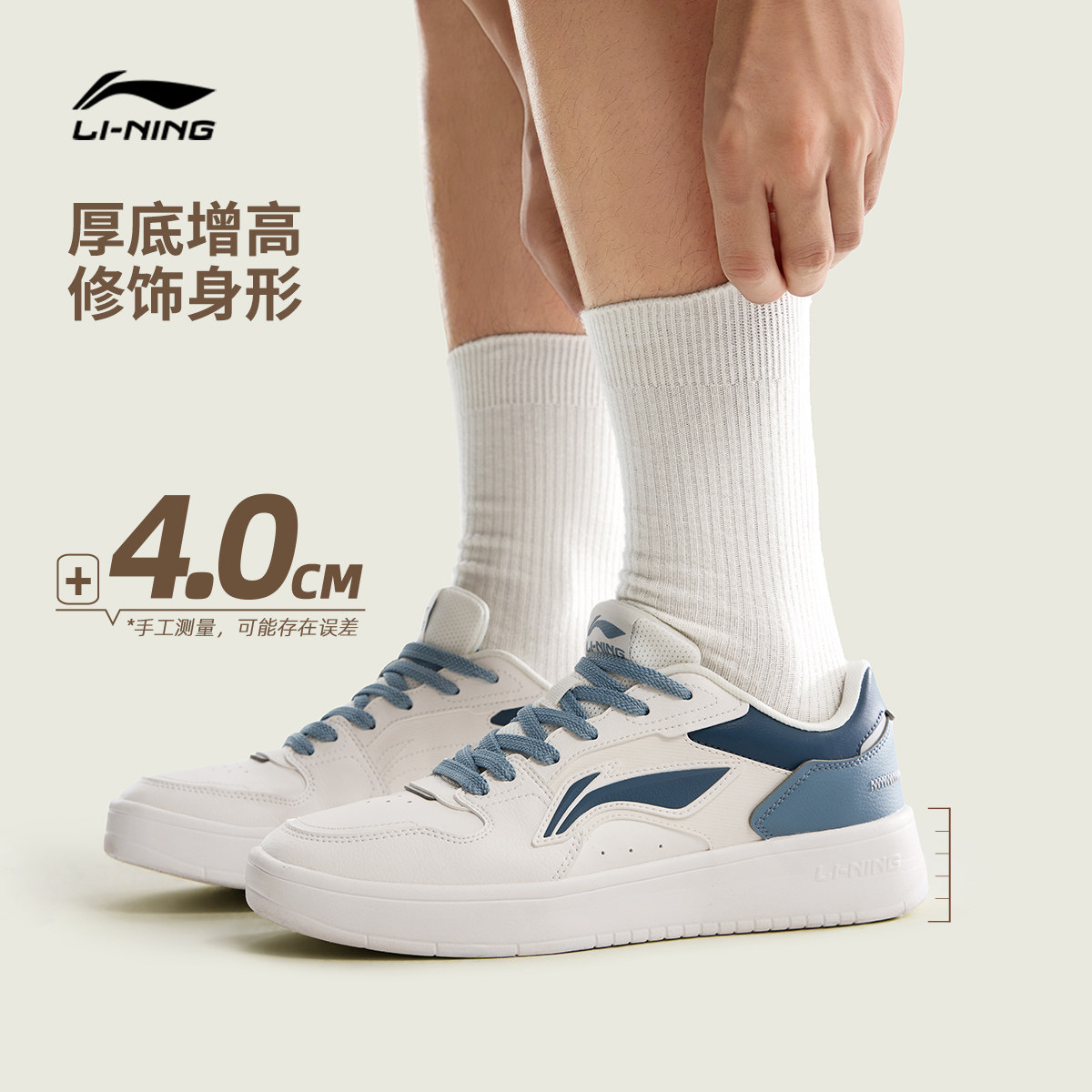 李宁元宝V3丨板鞋男鞋新款百搭轻便厚底增高小白鞋休闲鞋男运动鞋