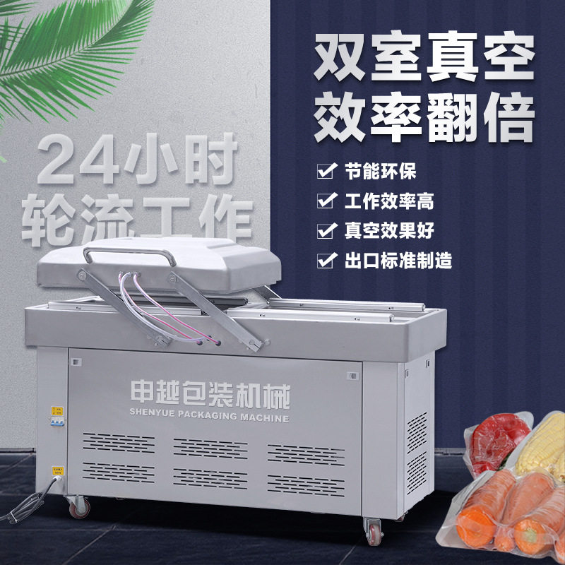 申越双室平板真空包装机海鲜水产品干湿两用可定做自动翻盖真空机