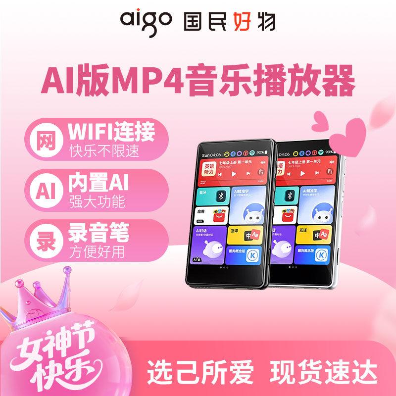 爱国者mp3随身听AI版MP4音乐播放器触控蓝牙录音英语听力学生专用